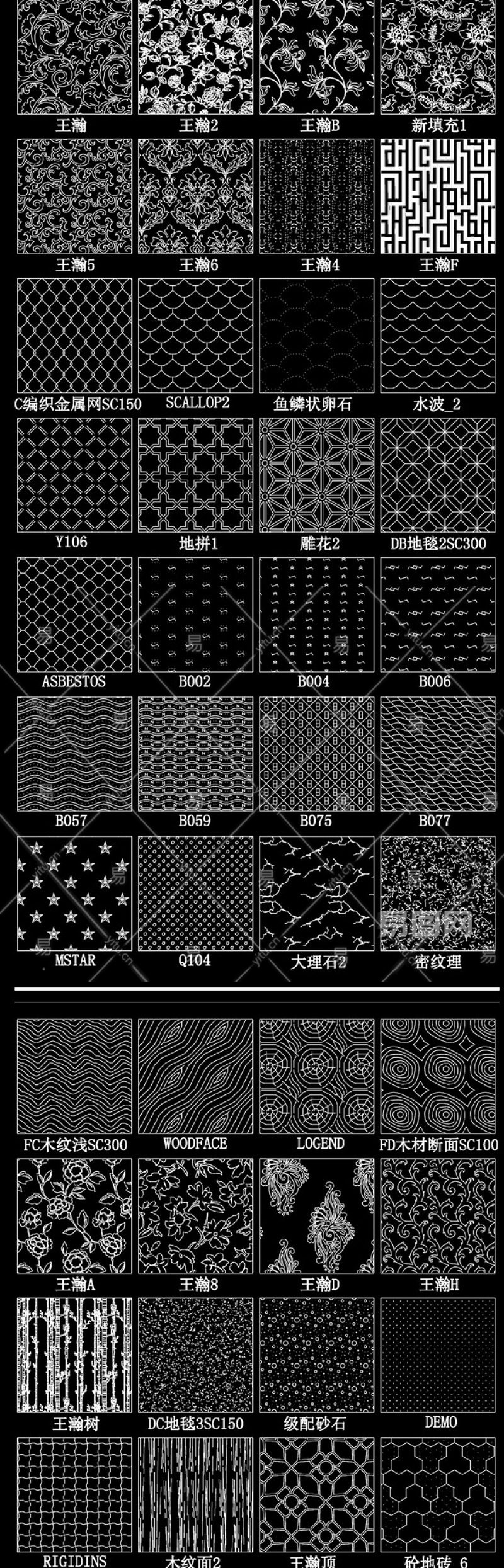 当前的位置:首页 > 室内CAD图纸 > cad > CAD图库 > 图案雕花 > CAD自定义填充图案大全3D模型