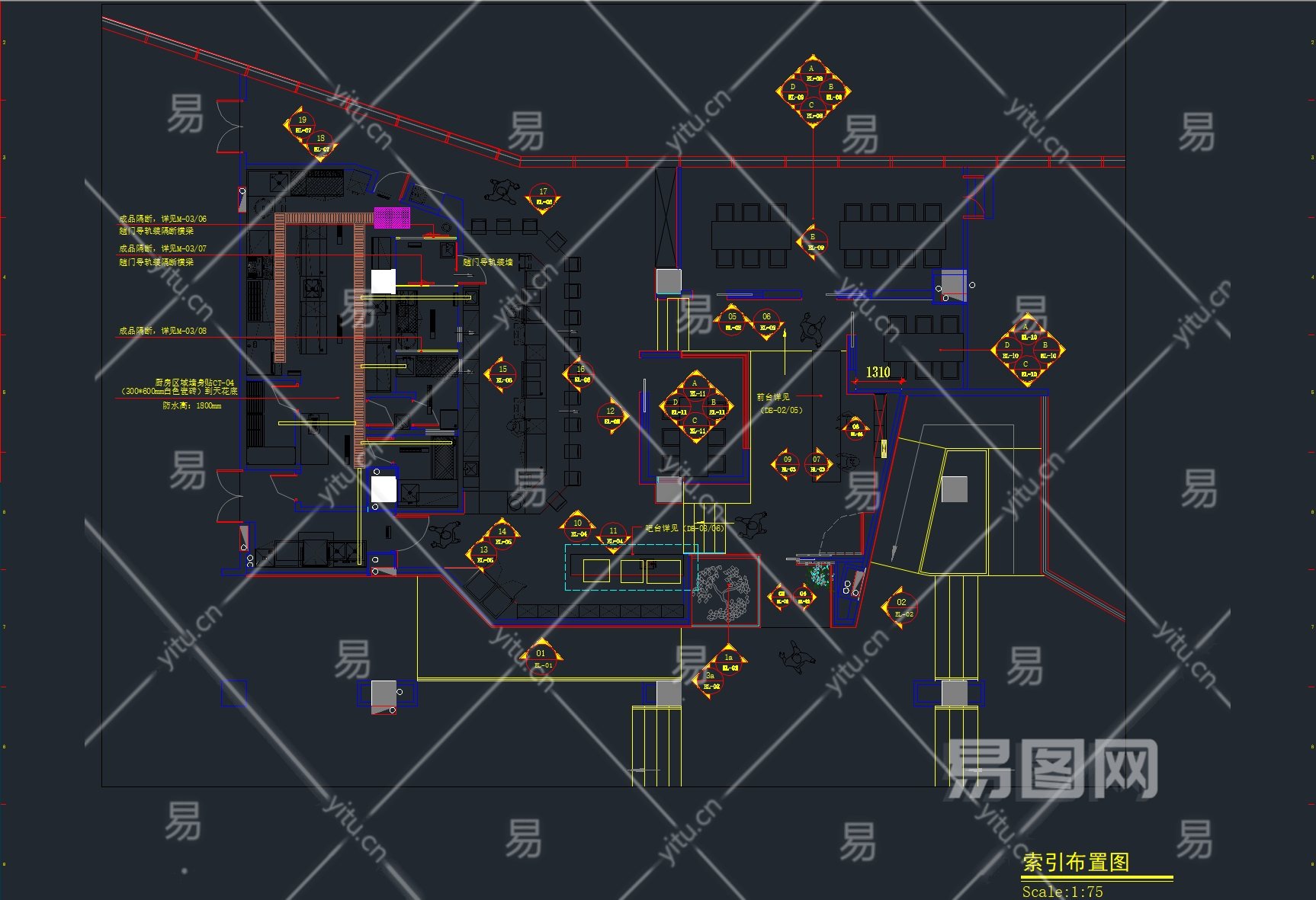当前的位置:首页 > 室内CAD图纸 > cad > 餐饮娱乐 > 餐饮空间 > 【CAD图纸】云鹤日本料理寿司店丨效果图+CAD施工图+空调图+物料书