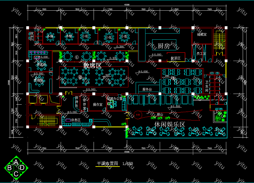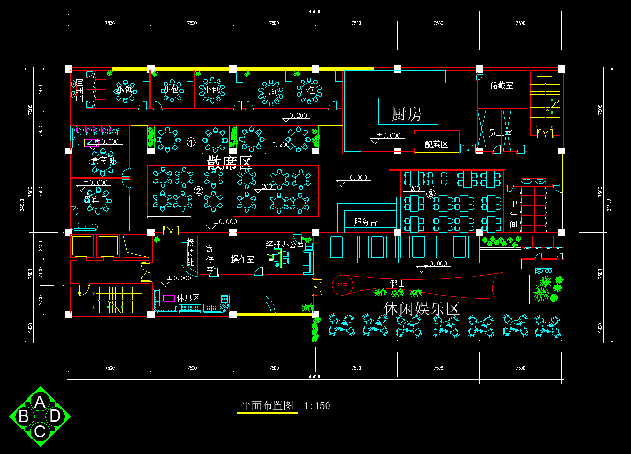 当前的位置:首页 > 室内CAD图纸 > cad > 餐饮娱乐 > 餐饮空间 > 古典风格中餐厅施工图全套,餐厅CAD平立面图下载