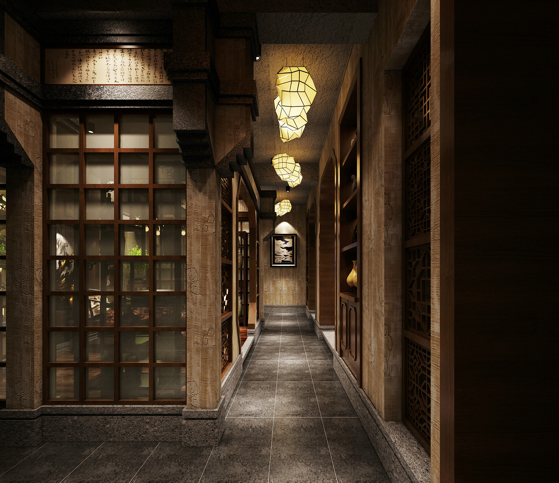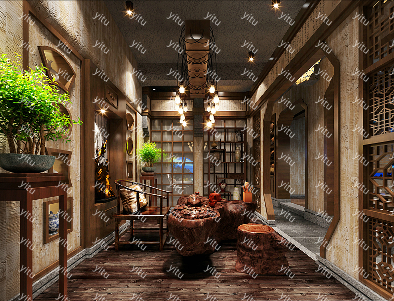 新中式禅意餐厅CAD施工图,CAD建筑图纸下载内容简介:图纸包含原始结构图、天布置图、面材质图、效果图等,作图规范,可供参考。