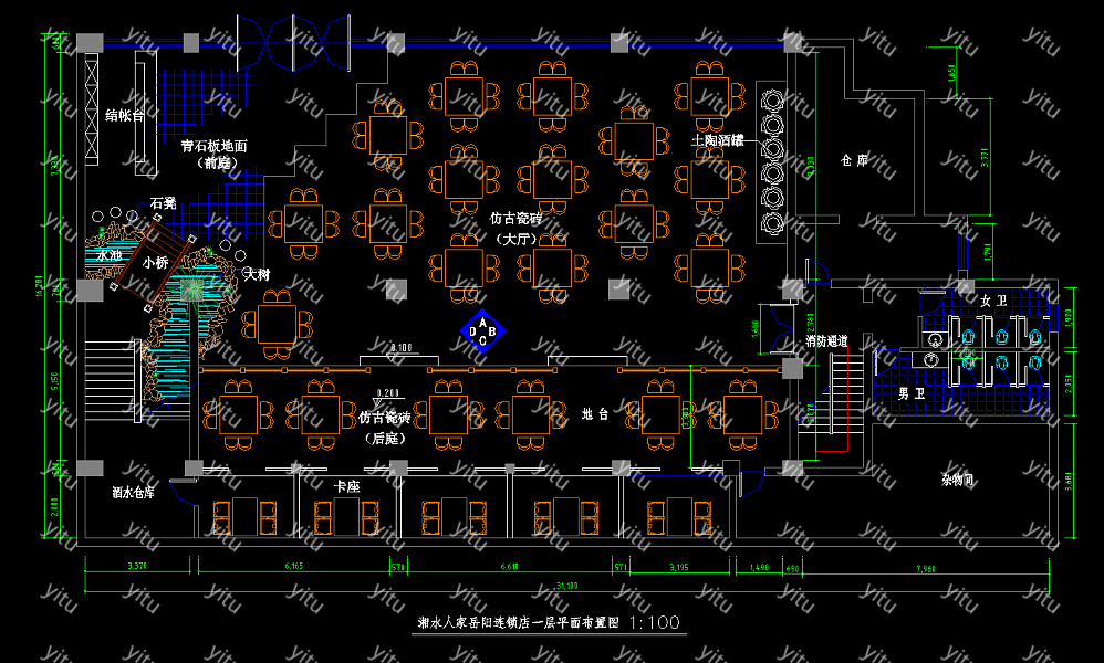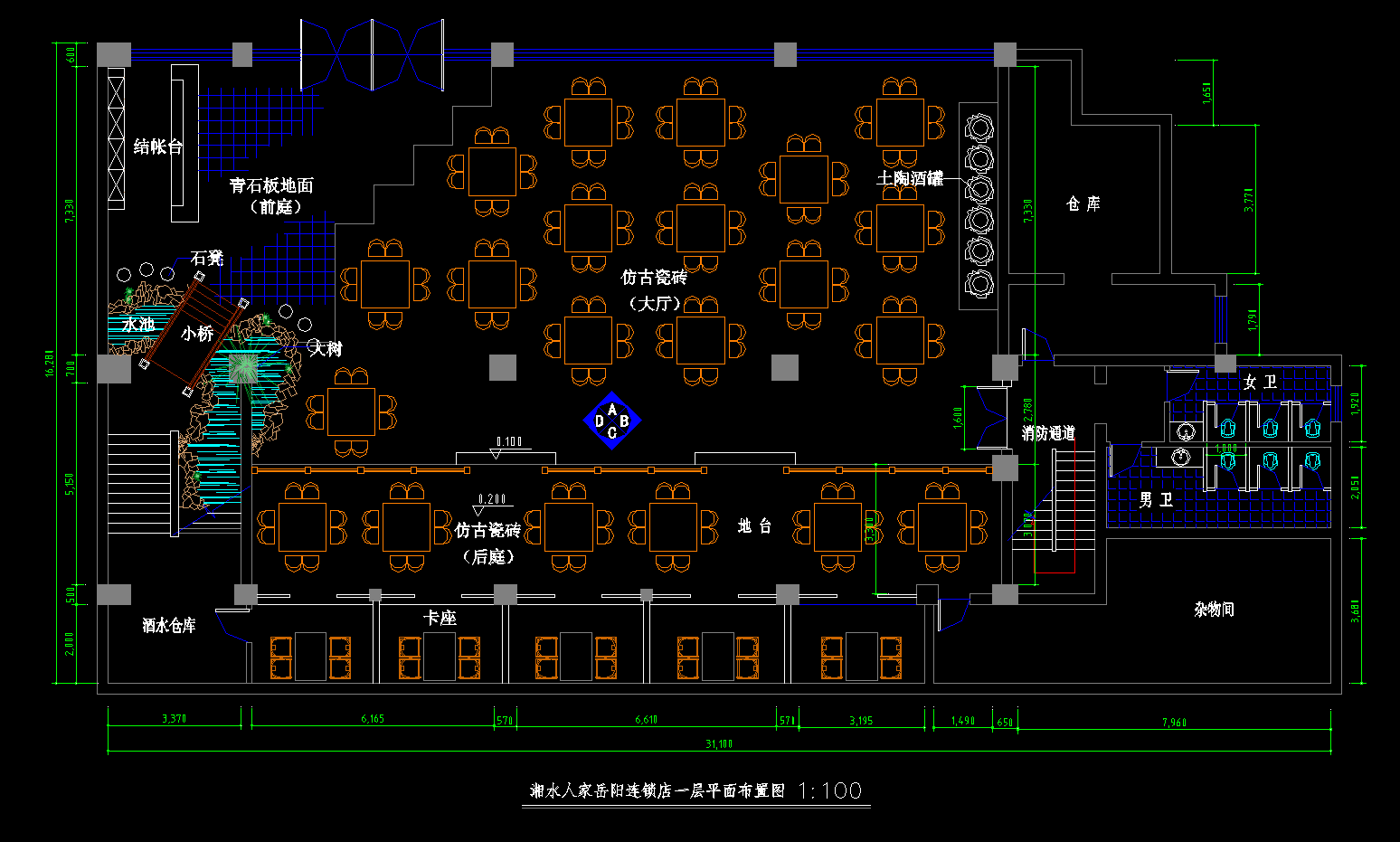 某餐厅连锁店室内装修设计图,餐厅建筑设计图纸下载