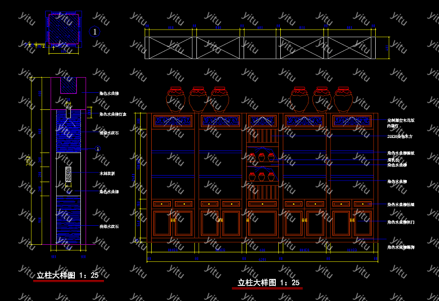 资料内容包括:一套CAD施工图,中餐厅立面索引图,中餐厅面材质图,中餐厅隔墙尺寸图,中餐厅布置图,中餐厅配置图,厨房设备立面图,吧台服务台图,天节点图,中餐厅的动线应尽量使餐厅中客的流通甬道宽畅,服务员的动线越短越好。应充分利用自然光线,给客以舒适明亮的感觉。内容详实,可供参考,图纸中无错漏碰缺,具有较高的参考价值。