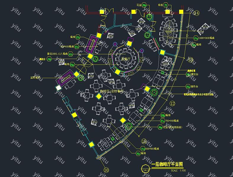 空间划分:成套咖啡厅                                   图纸深度:施工图