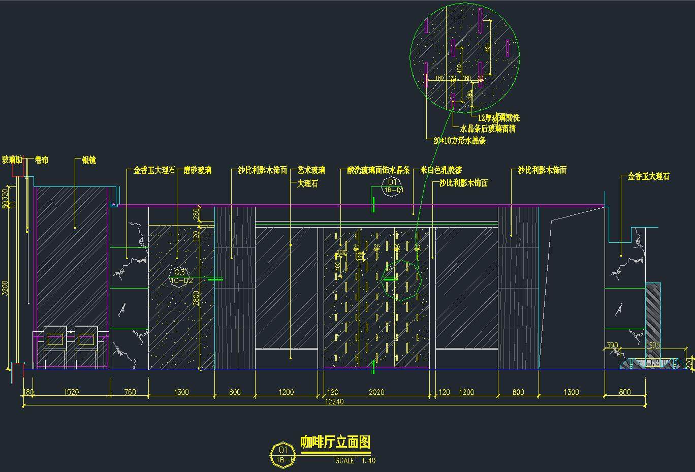 资料内容包括:全套CAD施工图,咖啡厅立面图,咖啡厅立面施工图02,咖啡厅立面施工图03,咖啡厅立面施工图04,咖啡厅立面施工图05,咖啡厅立面施工图06,咖啡厅立面施工图07,剖面图,平面布置图,内容详实,简洁直观,图纸中无错漏碰缺,作图规范,具有较高的参考价值,可供设计师参考。