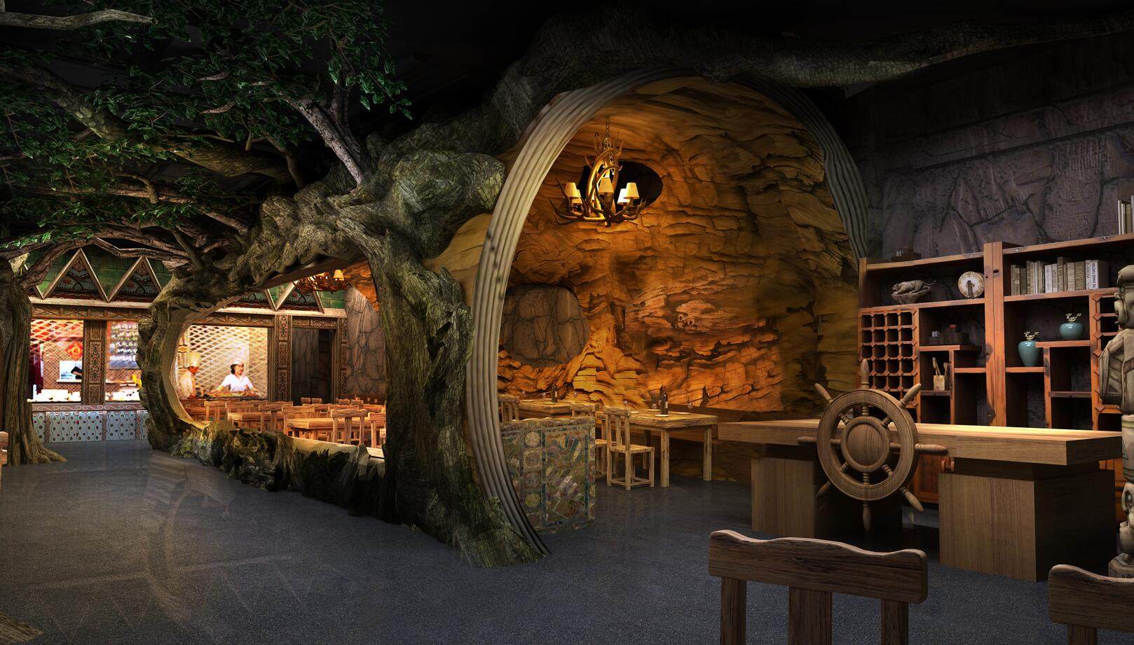 假山塑石包装火锅店施工图CAD图纸,火锅店cad设计图纸下载