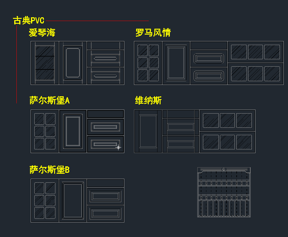 当前的位置:首页 > 室内CAD图纸 > cad > CAD图库 > 橱柜衣柜 > 橱柜门型cad图纸,图库CAD建筑图纸下载