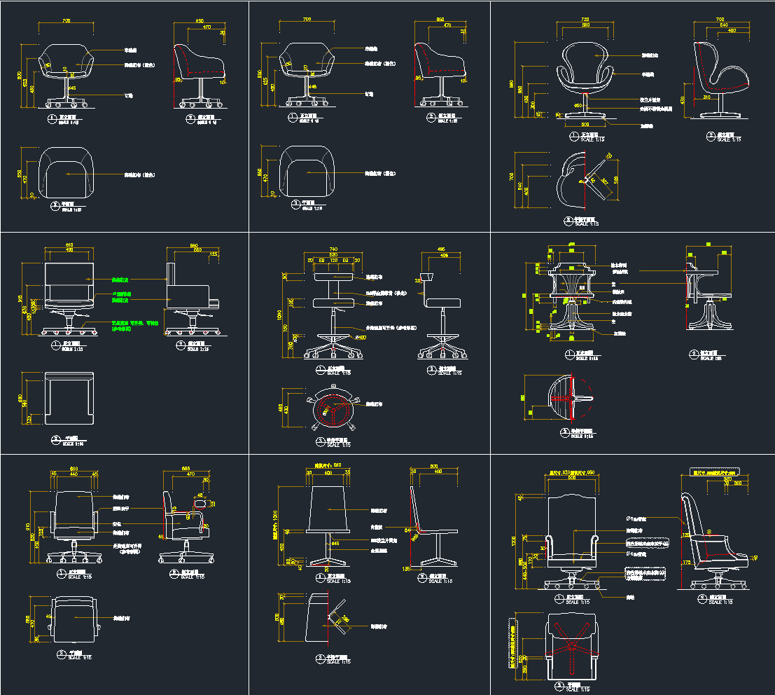 办公家具cad三视图,办公家具CAD施工图纸下载