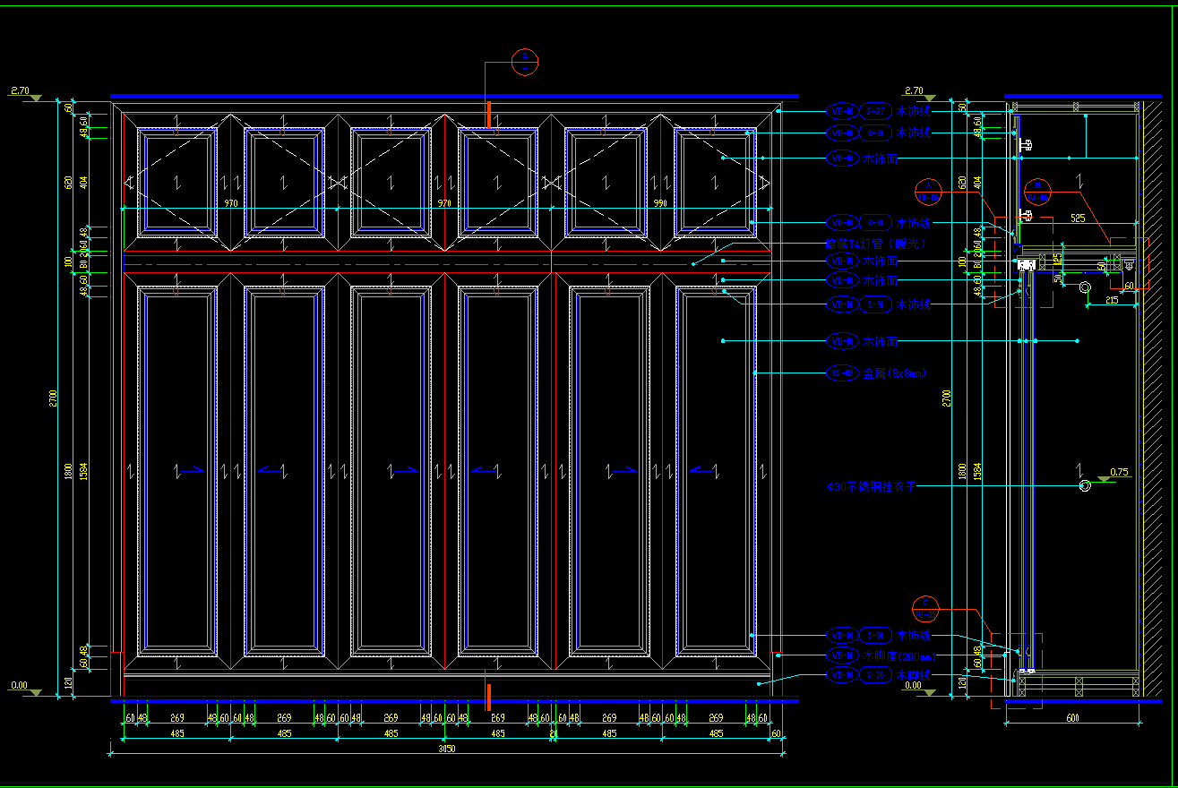 全套衣柜CAD设计图库,衣柜CAD图纸下载内容简介:图纸含有衣柜立面图、主视图、节点大样图,尺寸合理,文字标注统一,具有较高的参考价值。