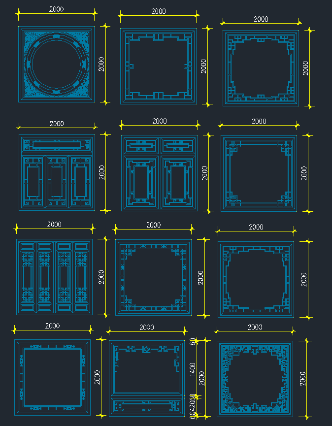 精品古建筑窗CAD施工图,建筑窗CAD图纸下载