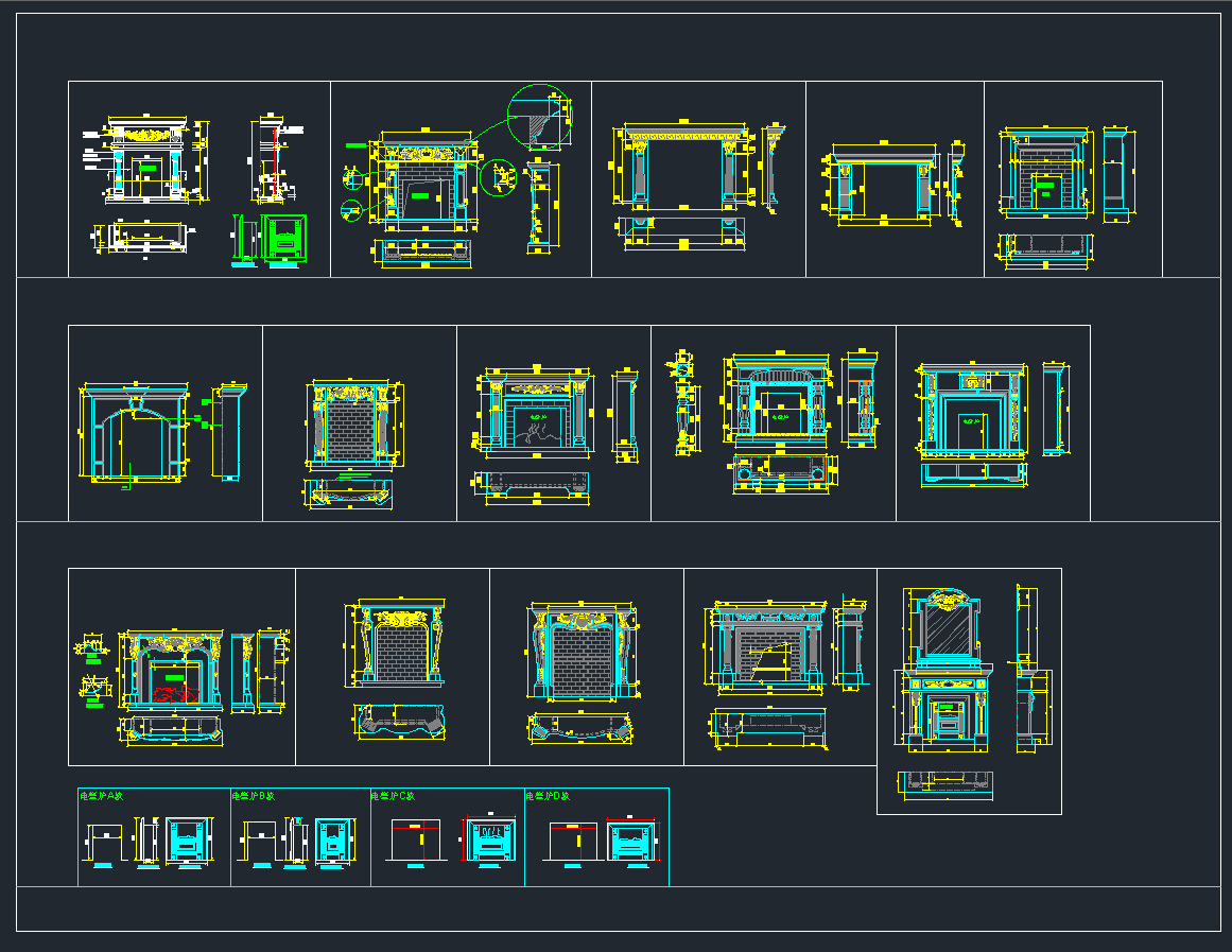 原创最齐全壁炉CAD图库,壁炉CAD图纸下载