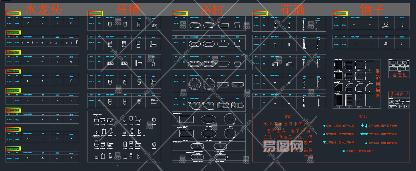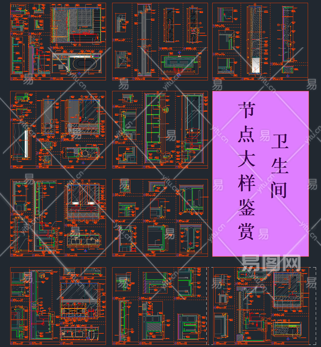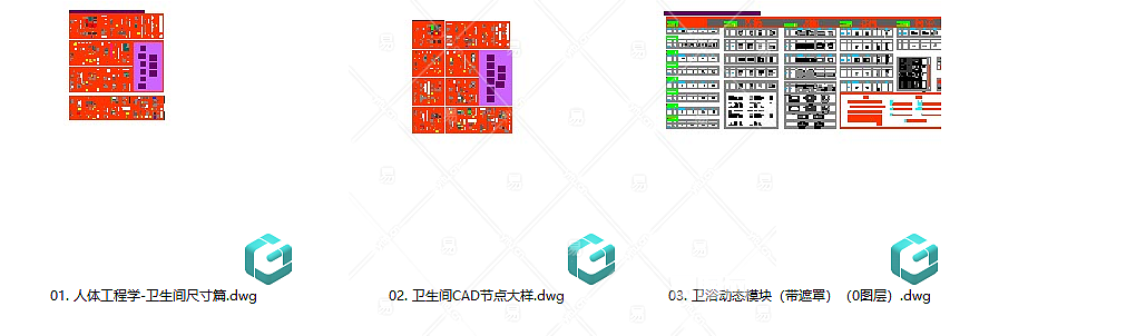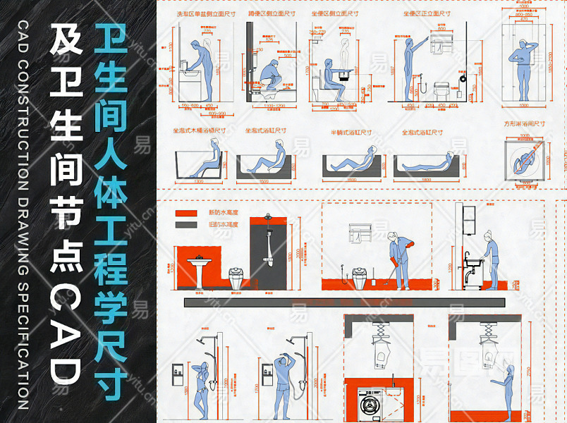 【CAD图纸】卫生间人体工程学尺寸CAD+节点大样+卫浴动态模块