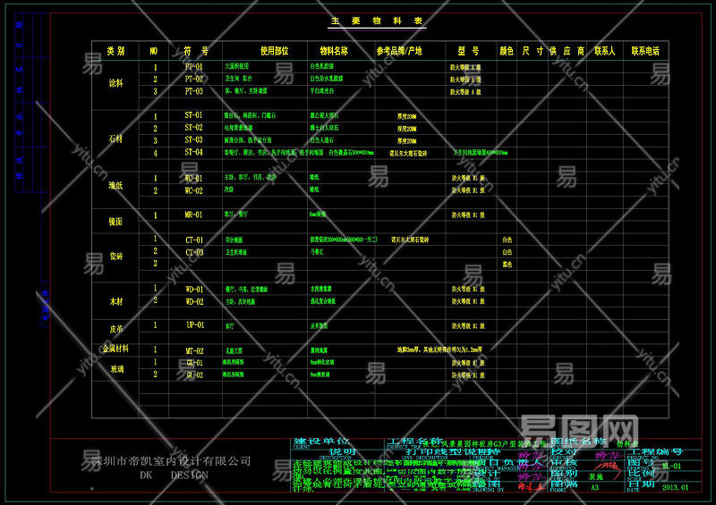 当前的位置:首页 > 室内CAD图纸 > cad > 家装图纸 > 家居 > G3户型样板房材料表cad图纸