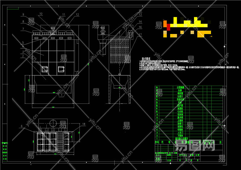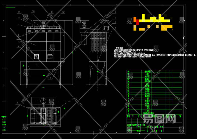布袋除尘器装配图CAD机械图纸