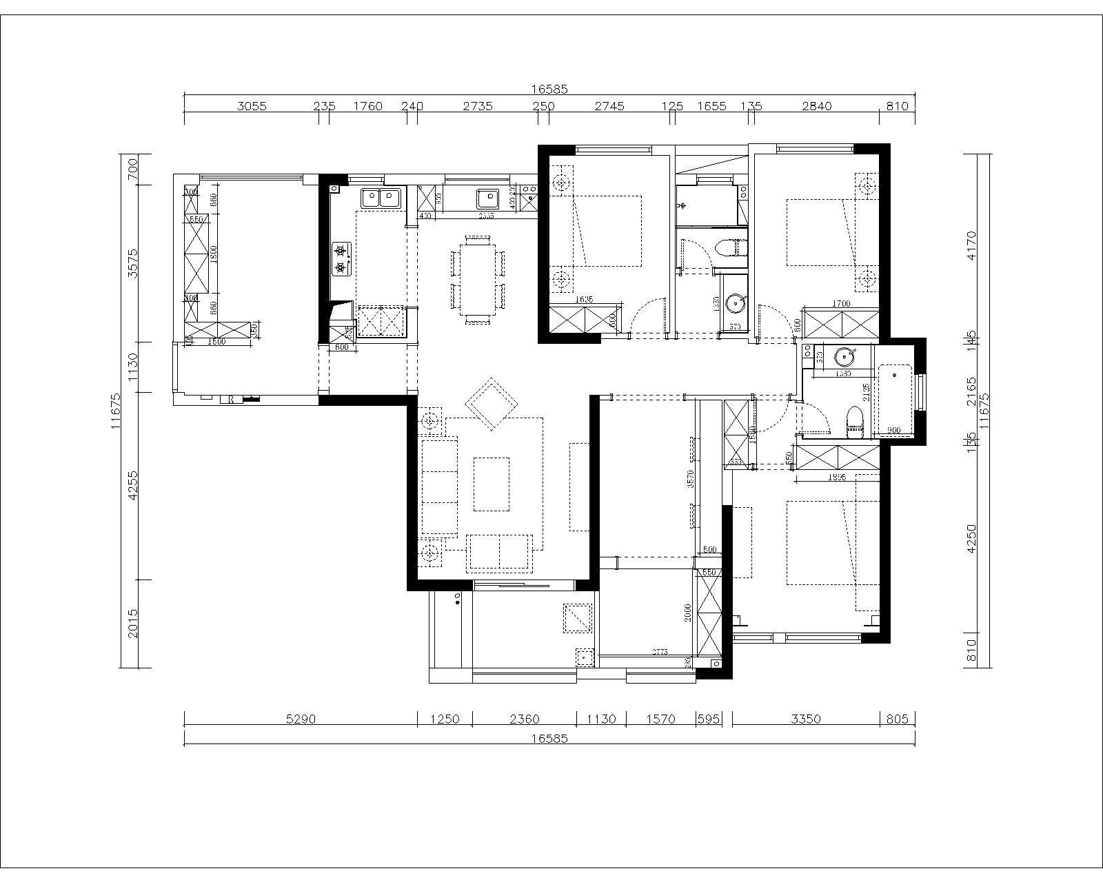 欧式三室两厅2卫158㎡施工图CAD图纸分享