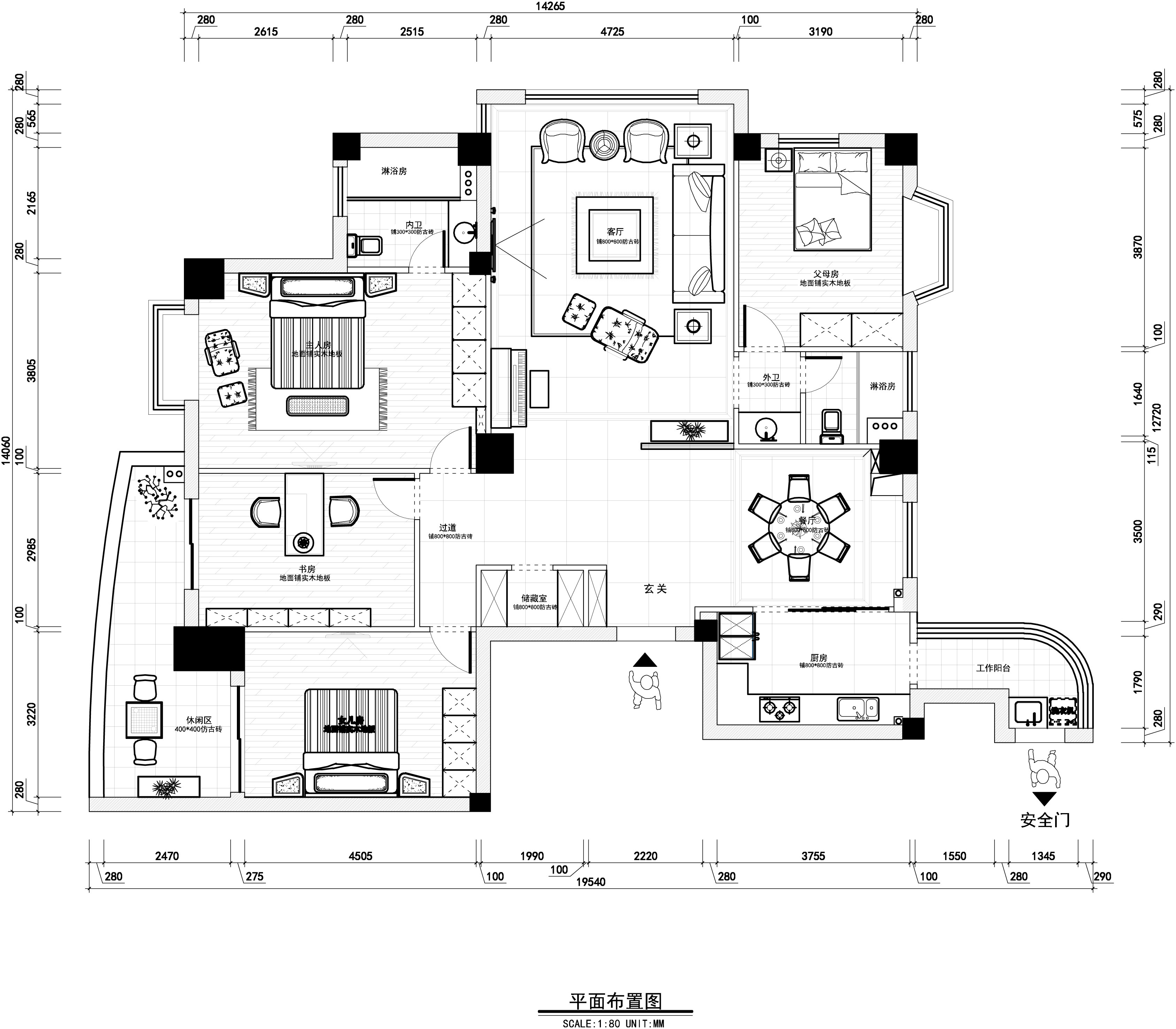 祥细家装户型图三居CAD,免费下载