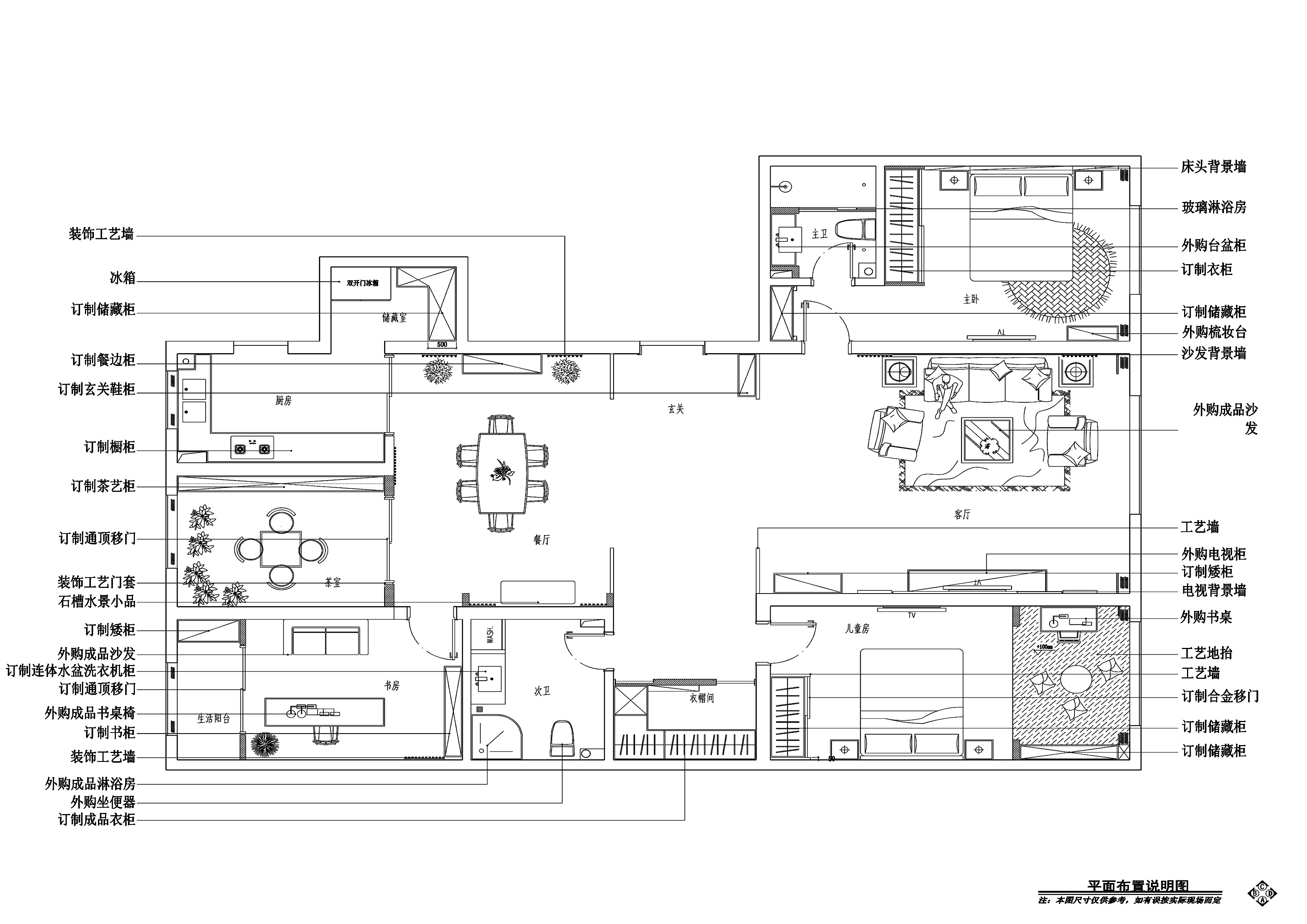祥细家装衣帽间,客厅卧室户型图三居CAD,免费下载
