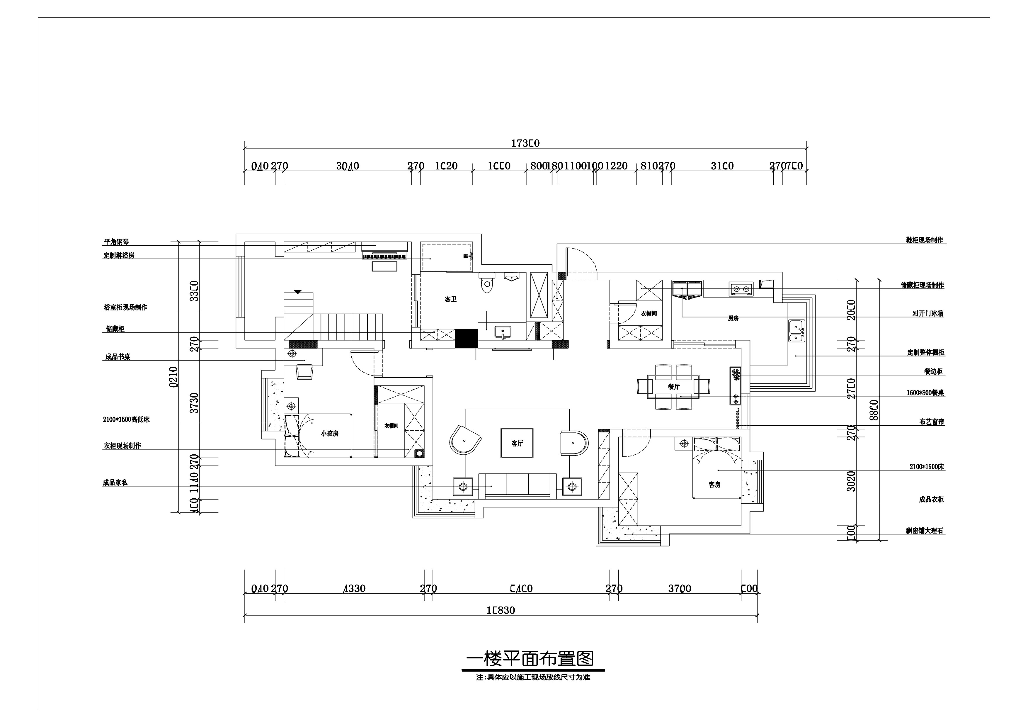 祥细客厅卧室家装户型图三居CAD,免费下载