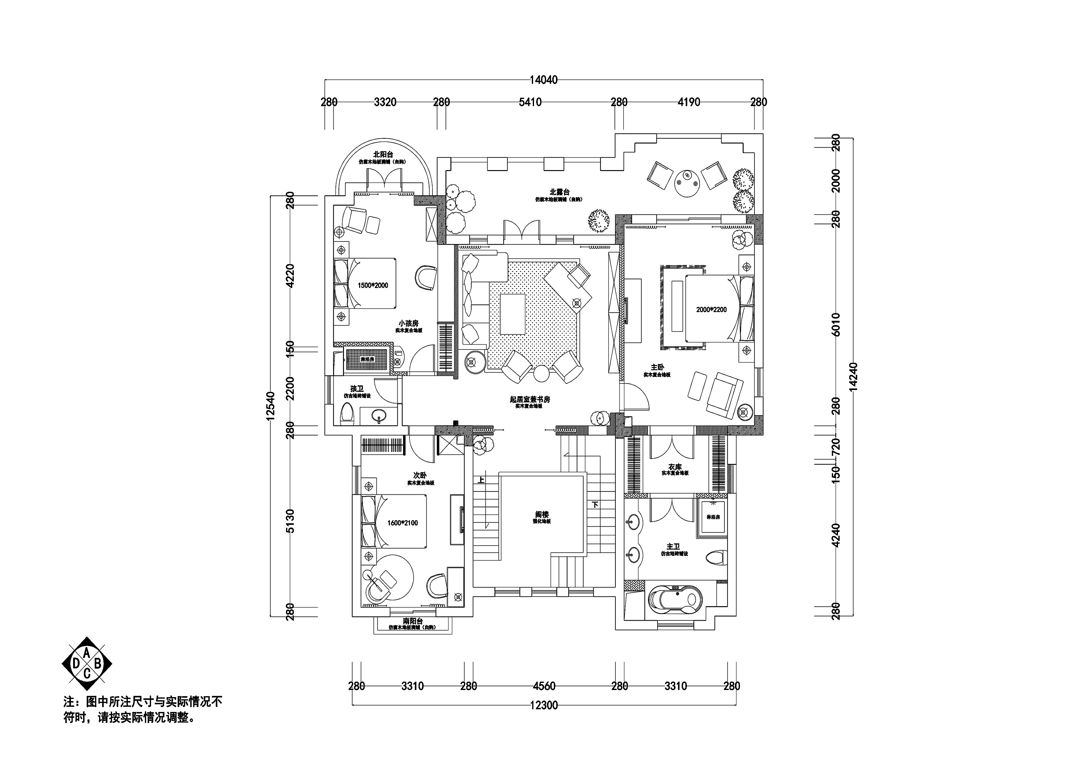 祥细客厅卧室家装户型图三居CAD,免费下载