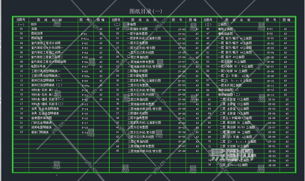 当前的位置:首页 > 室内CAD图纸 > cad > 家装图纸 > 别墅大宅 > 【CAD图纸】碧桂园欧式别墅CAD施工图+物料表+高清摄影