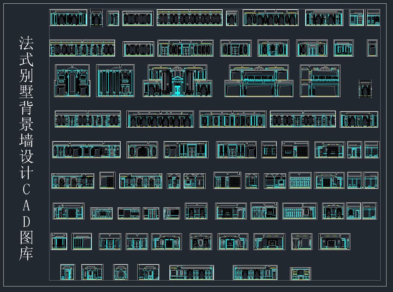 法式别墅背景墙设计CAD图库,别墅CAD建筑施工图下载