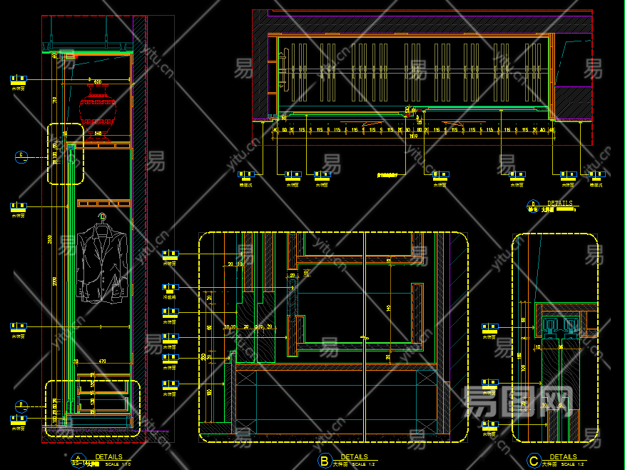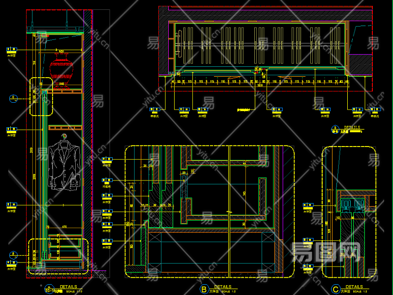 当前的位置:首页 > 室内CAD图纸 > cad > 节点详图 > 家具节点 > 【CAD图纸】衣柜CAD节点图库150款