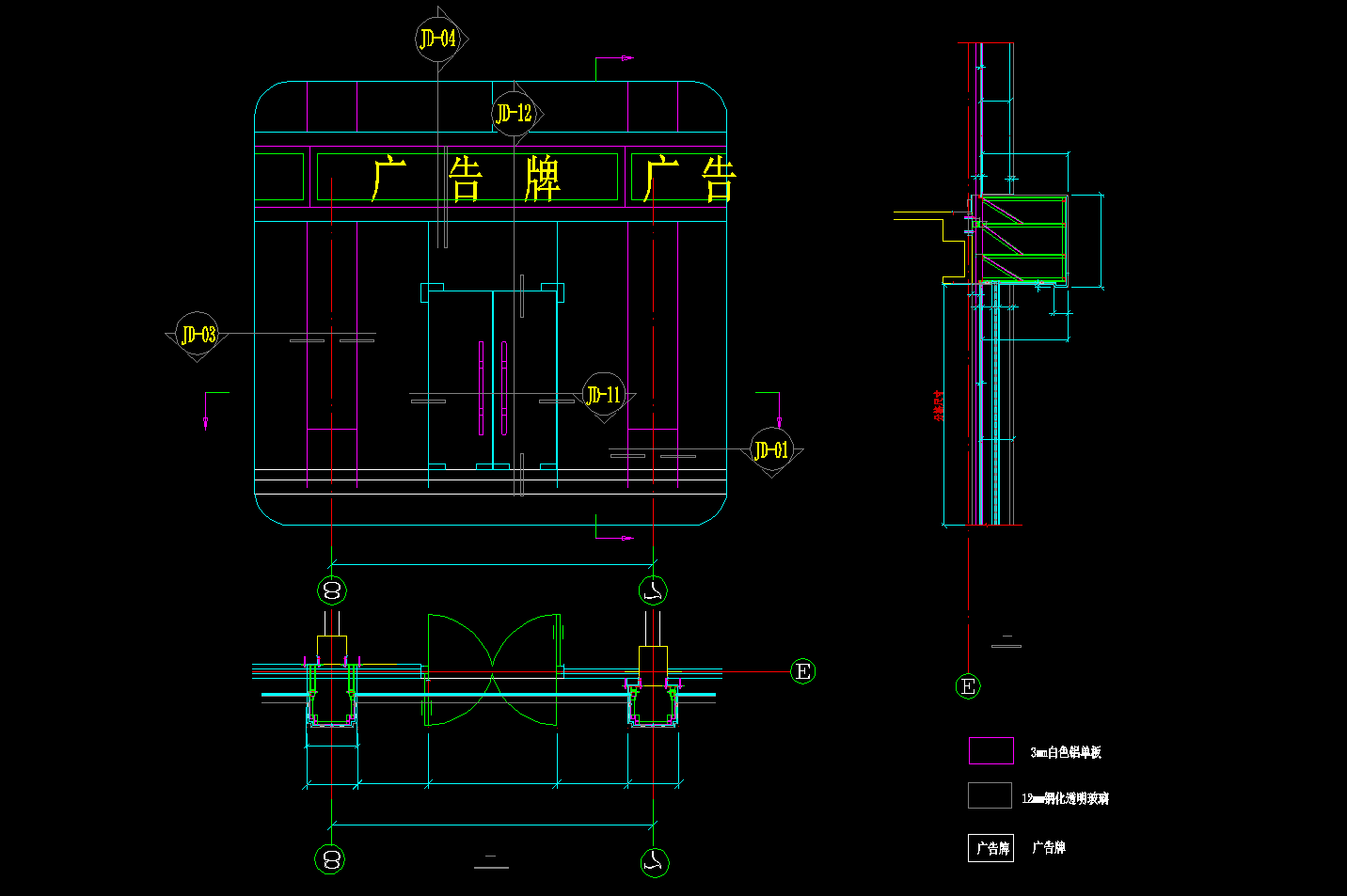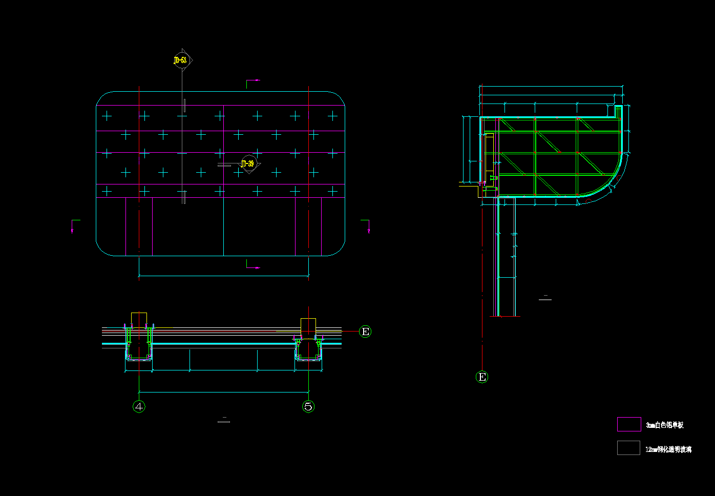 商业街幕墙,悬吊雨棚平立面CAD施工图