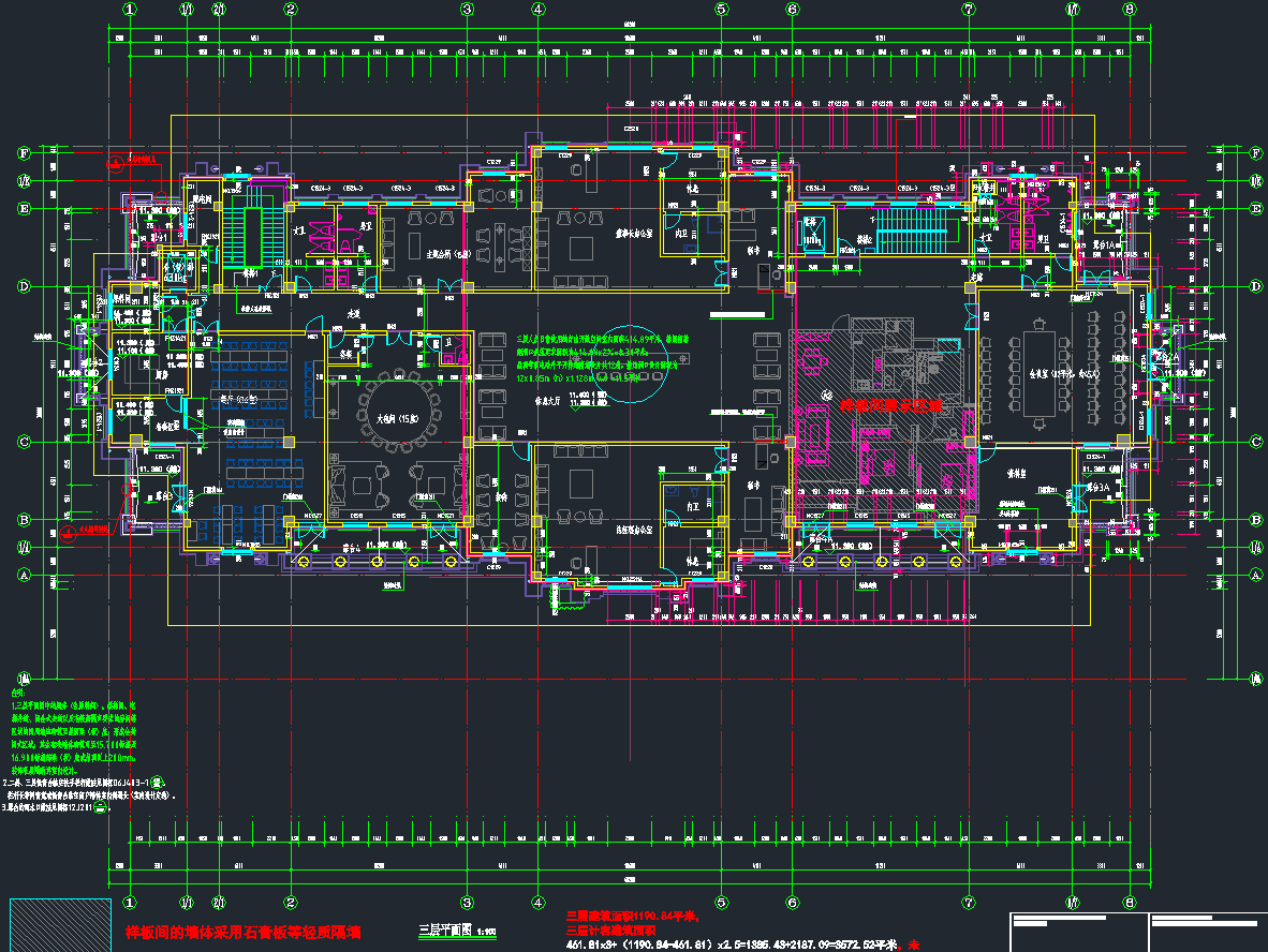 三层西班牙风格售楼处建筑施工图,售楼处CAD施工图纸下载