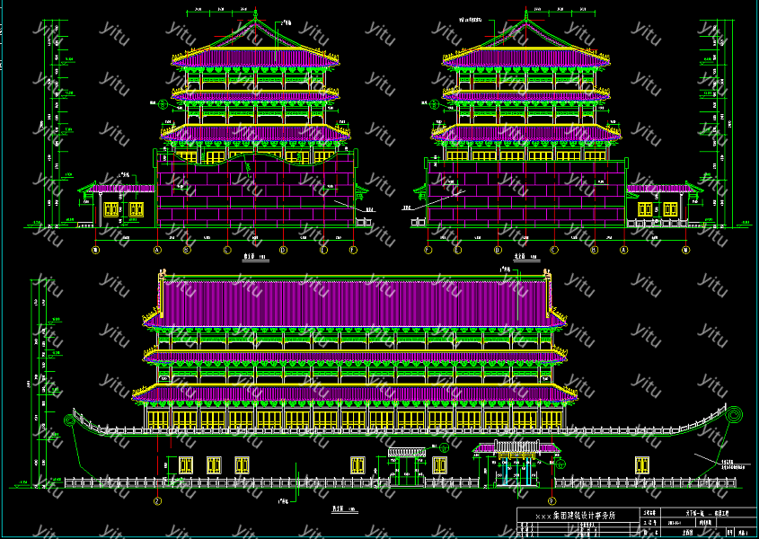 造型仿古饭店建筑图,饭店CAD建筑图纸下载内容简介:图纸包含平面图、立面图、剖面图、节点大样图等,作图规范,内容详实,具有较高的参考价值。