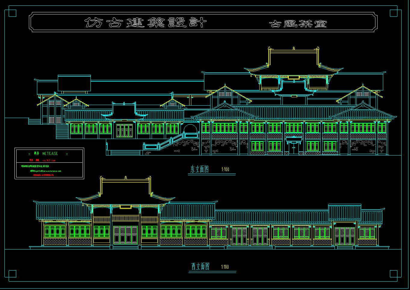 古建筑施工图,建筑CAD图纸下载内容简介:图纸包含立面图、平面图、剖面图、节点大样图等,作图规范,内容详实,可供参考。