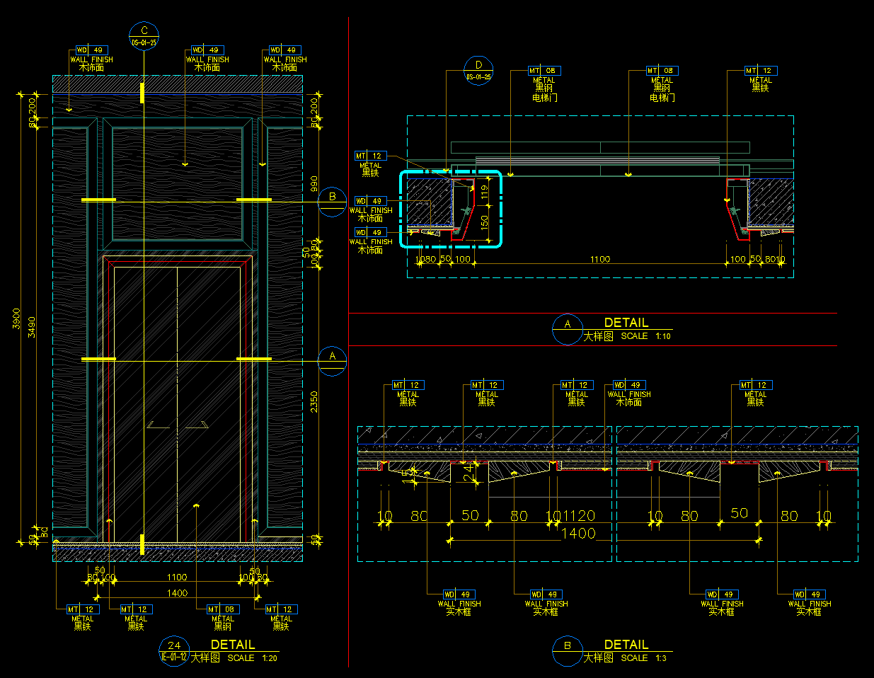 电梯间CAD设计节点大样施工图,cad建筑工程图纸下载