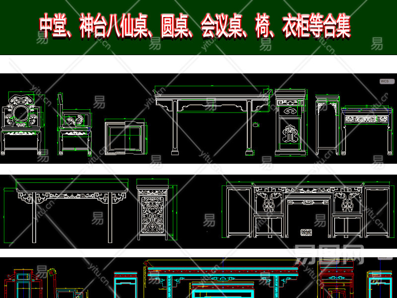 当前的位置:首页 > 室内CAD图纸 > cad > 家装图纸 > 名师作品 > 大衣柜桌子椅子神台宝座中堂cad图库3D模型