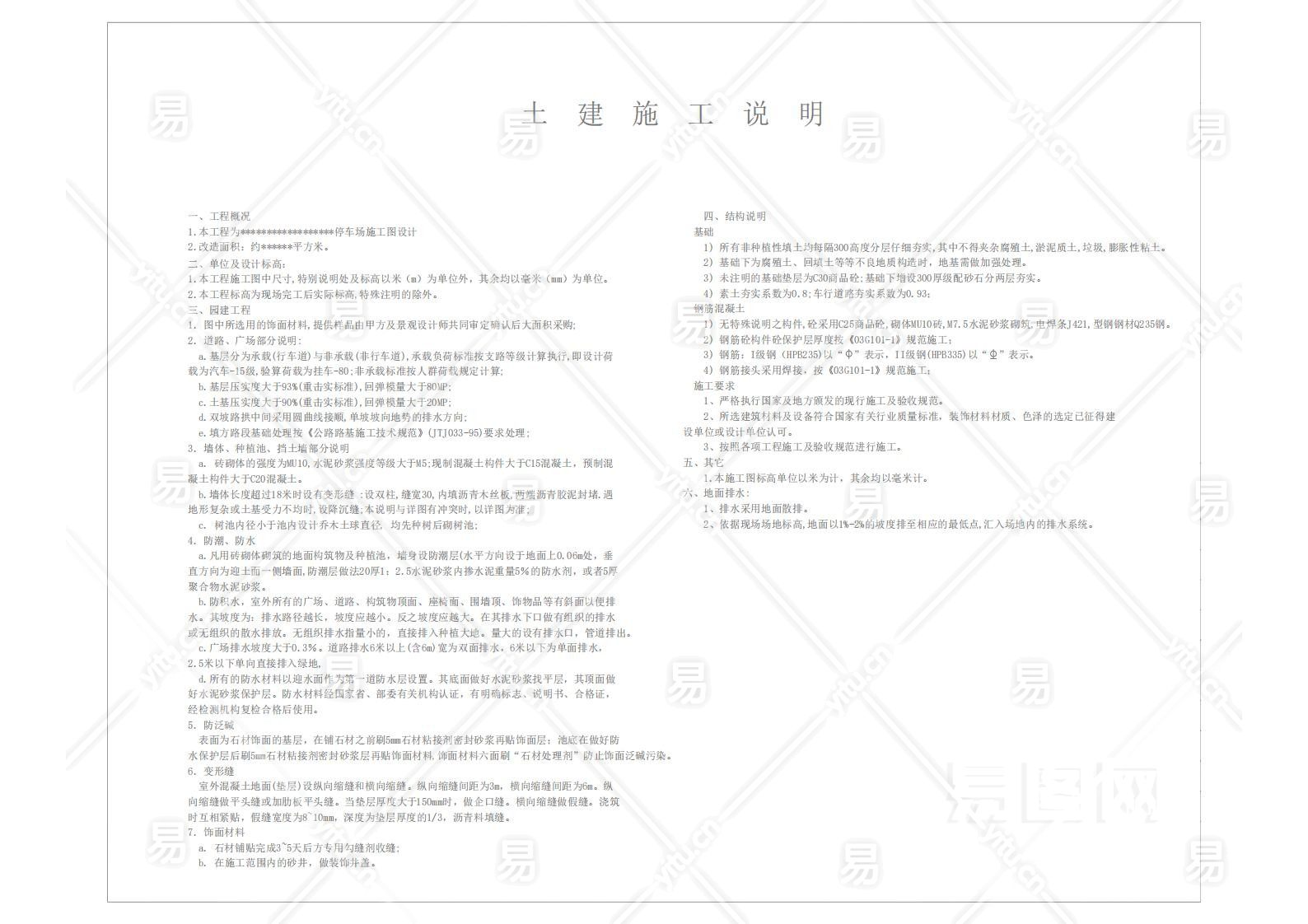 当前的位置:首页 > 室内CAD图纸 > cad > 景观园林 > 其它 > 医院停车场施工图含护坡、排水、地面大样(附工程量清单))