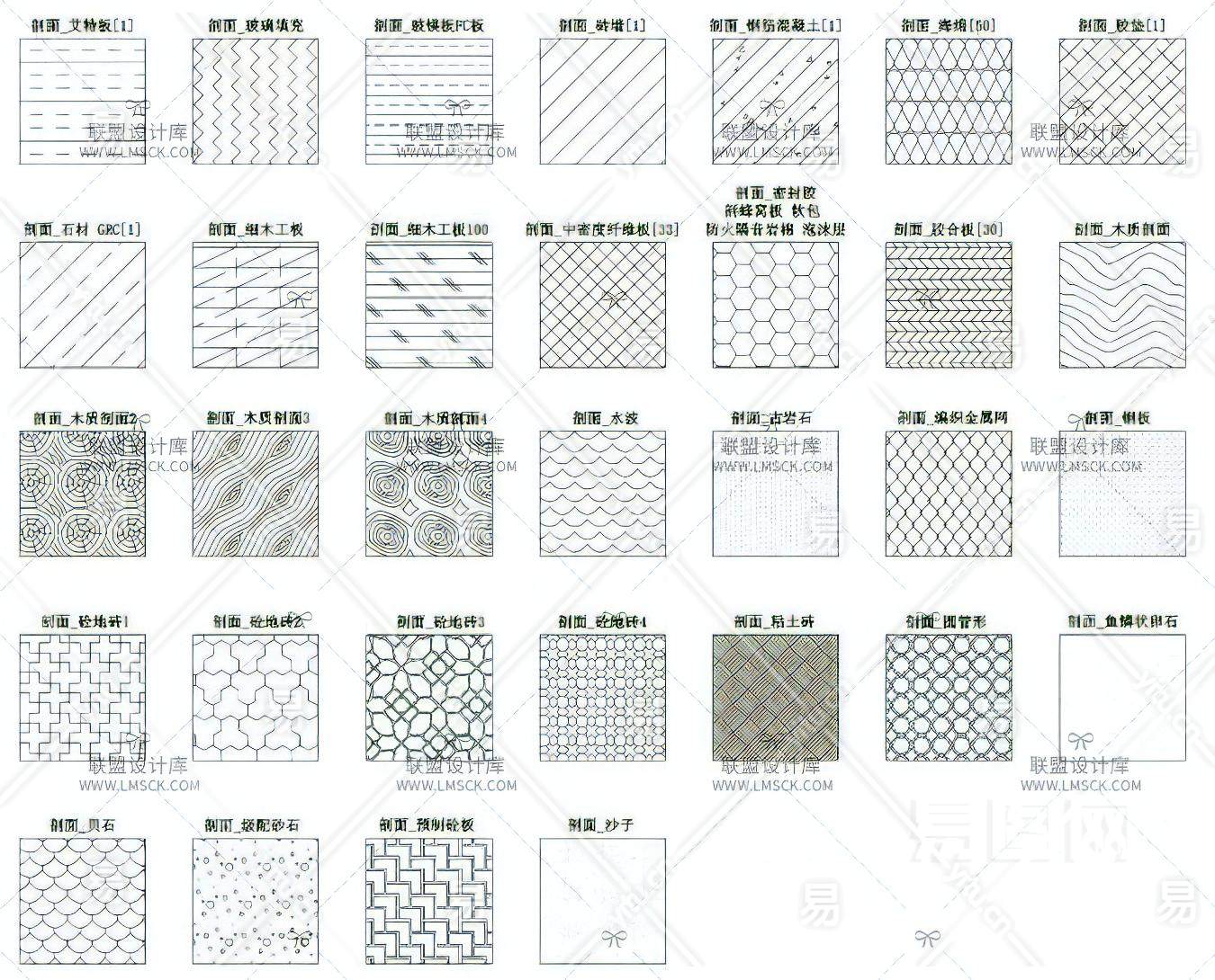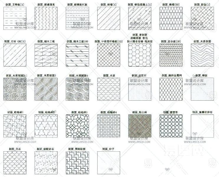 当前的位置:首页 > 室内CAD图纸 > cad > CAD图库 > 图库集 > 【CAD图纸】室内常用CAD填充图案180例