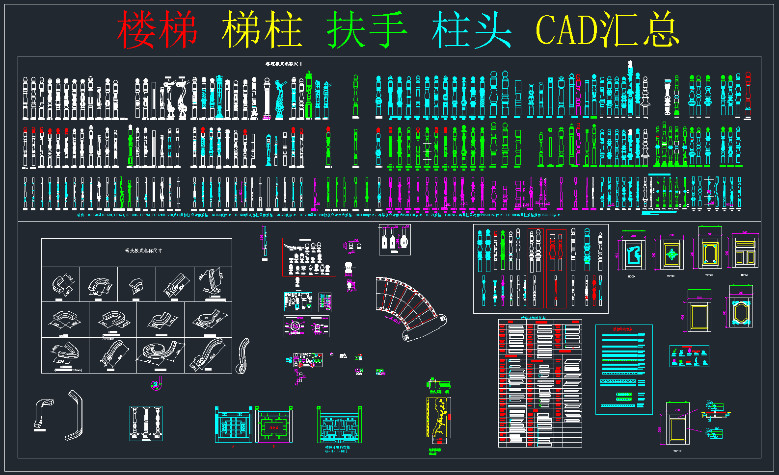 楼梯 梯柱 扶手 柱头 CAD汇总,扶梯扶手CAD施工图纸下载