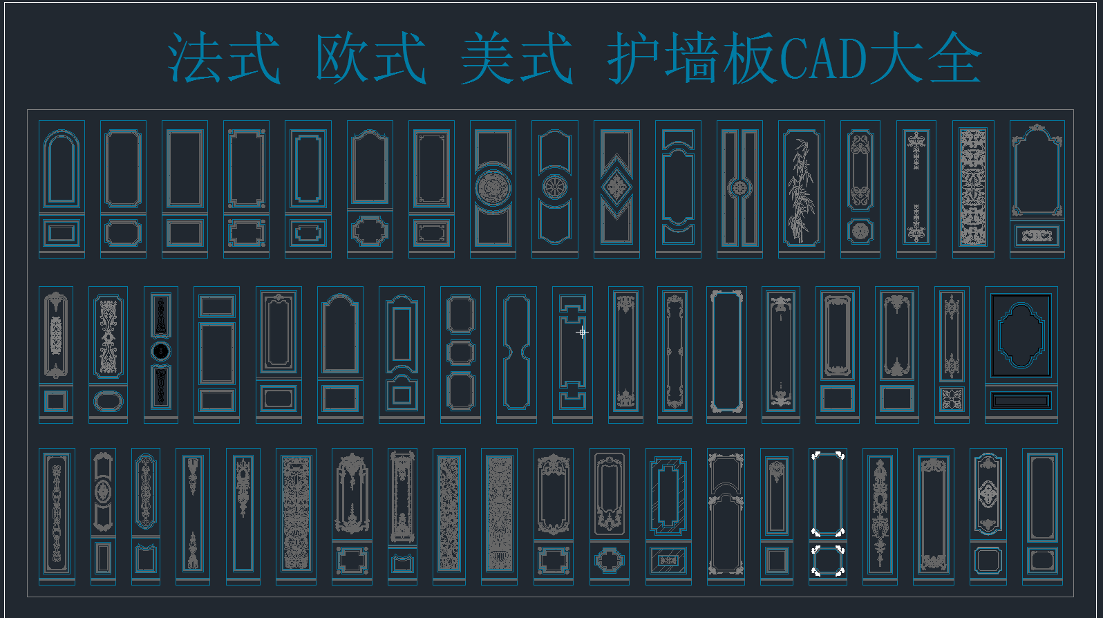 当前的位置:首页 > 室内CAD图纸 > cad > CAD图库 > 图库集 > 法式 欧式 美式 护墙板 CAD图库,图库CAD建筑图纸下载