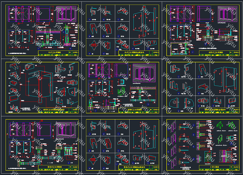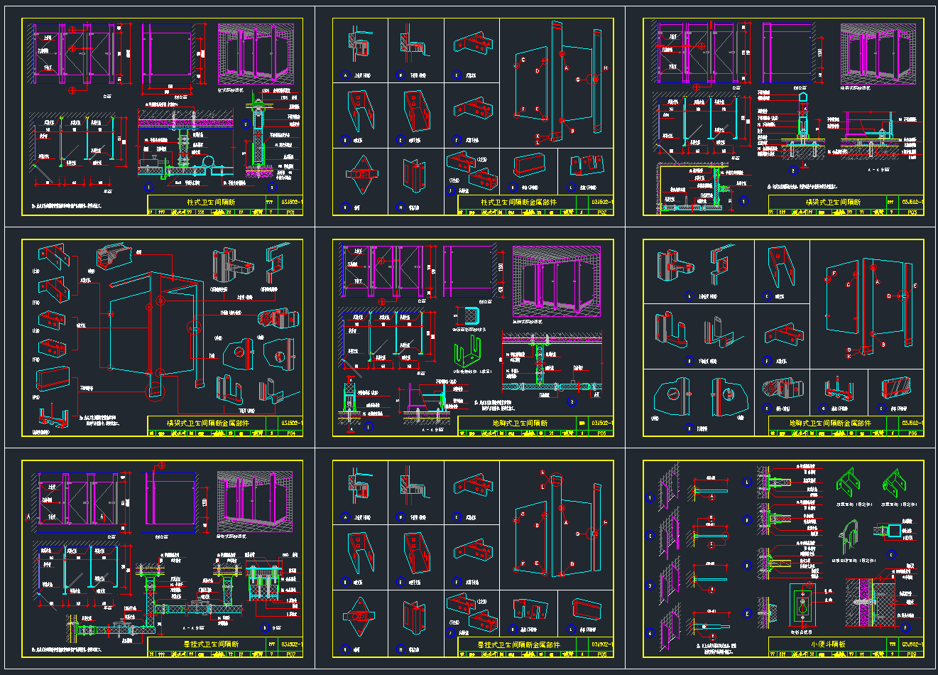全套标准卫生间隔断CAD图库,卫生间隔断CAD施工图纸下载