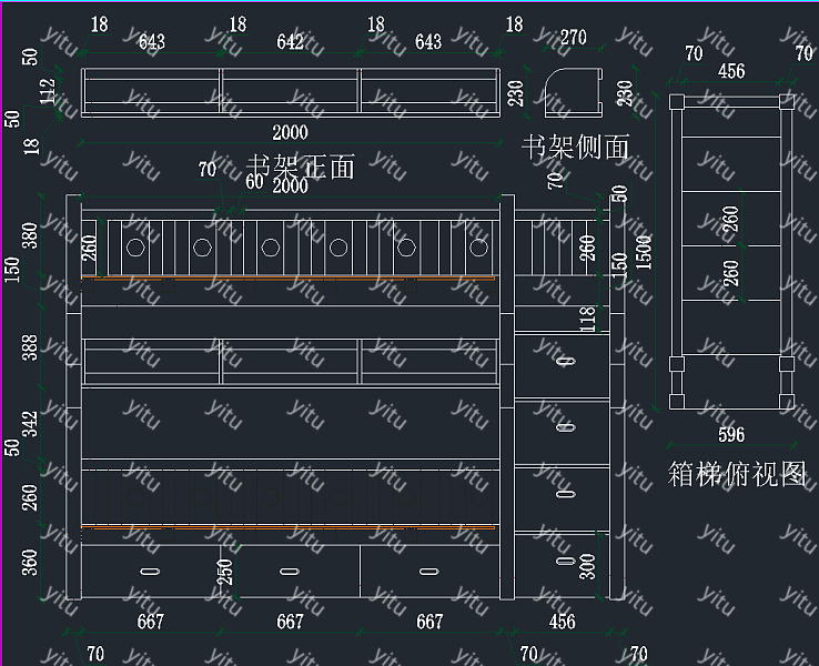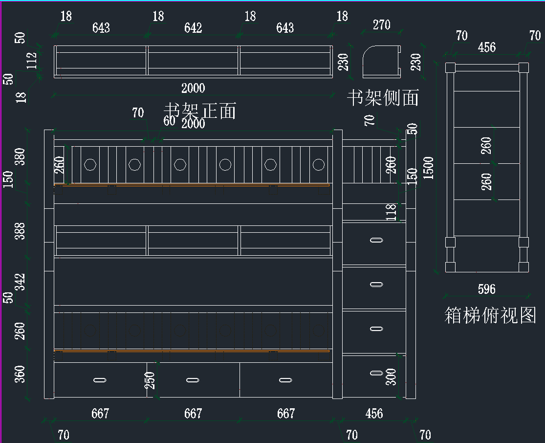 高低床儿童床CAD图库,儿童床CAD施工图纸下载内容简介:图纸含有床立面图、箱梯俯视图、小孩床立面图等,内容详实,尺寸合理,具有较高的参考价值。