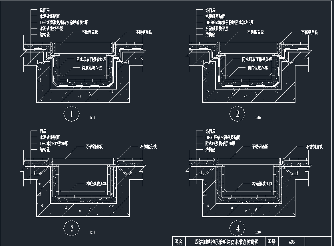 厨浴厕防水CAD图集,厨浴厕防水CAD施工图纸下载