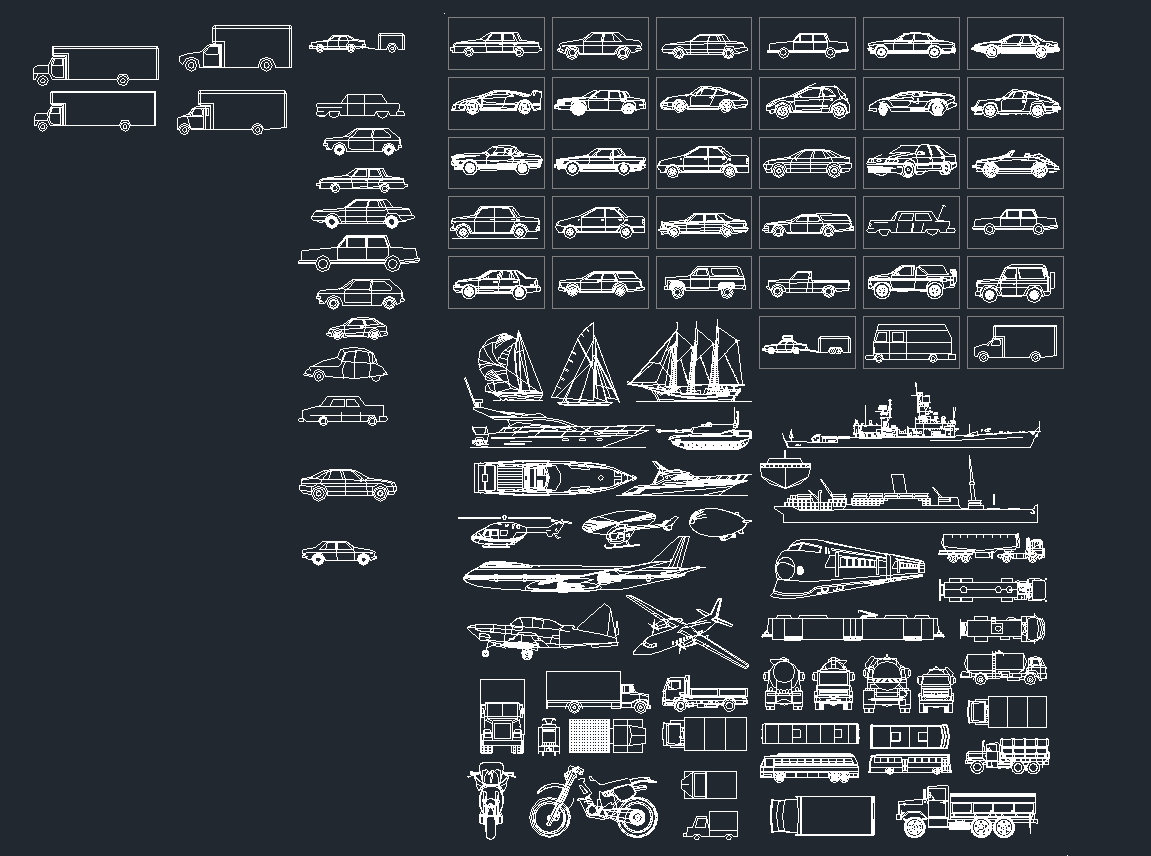 原创精细交通工具CAD图纸集合,交通工具CAD施工图纸下载内容简介:图纸含有多种交通工具CAD立面图、内容详实,作图规范,具有较高的参考价值。