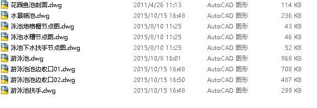 原创游泳池全套详细的CAD图库,游泳池CAD施工图纸下载内容简介:图纸含有游泳池全套CAD节点大样图,内容详实,作图规范,具有较高的参考价值。