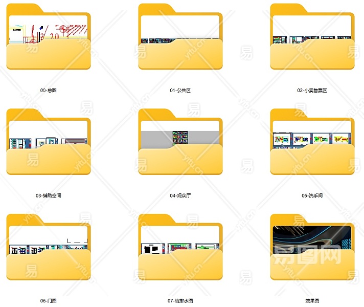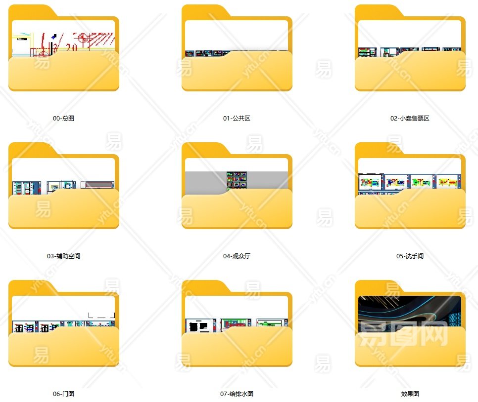 当前的位置:首页 > 室内CAD图纸 > cad > 餐饮娱乐 > 休闲娱乐 > 【CAD图纸】电影院影城装修 效果图+CAD施工图