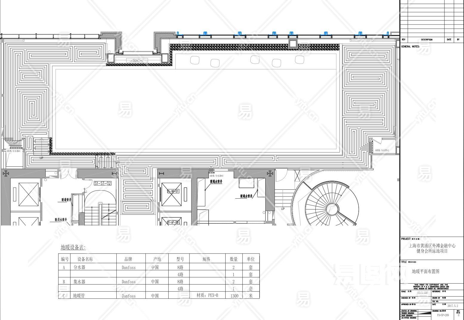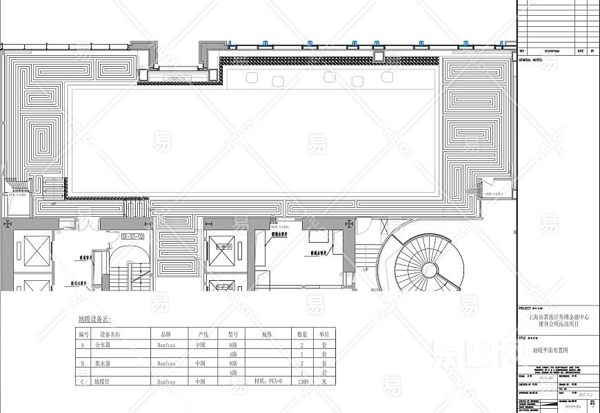 【CAD图纸】上海市健身会所泳池 CAD施工图+电气+地暖