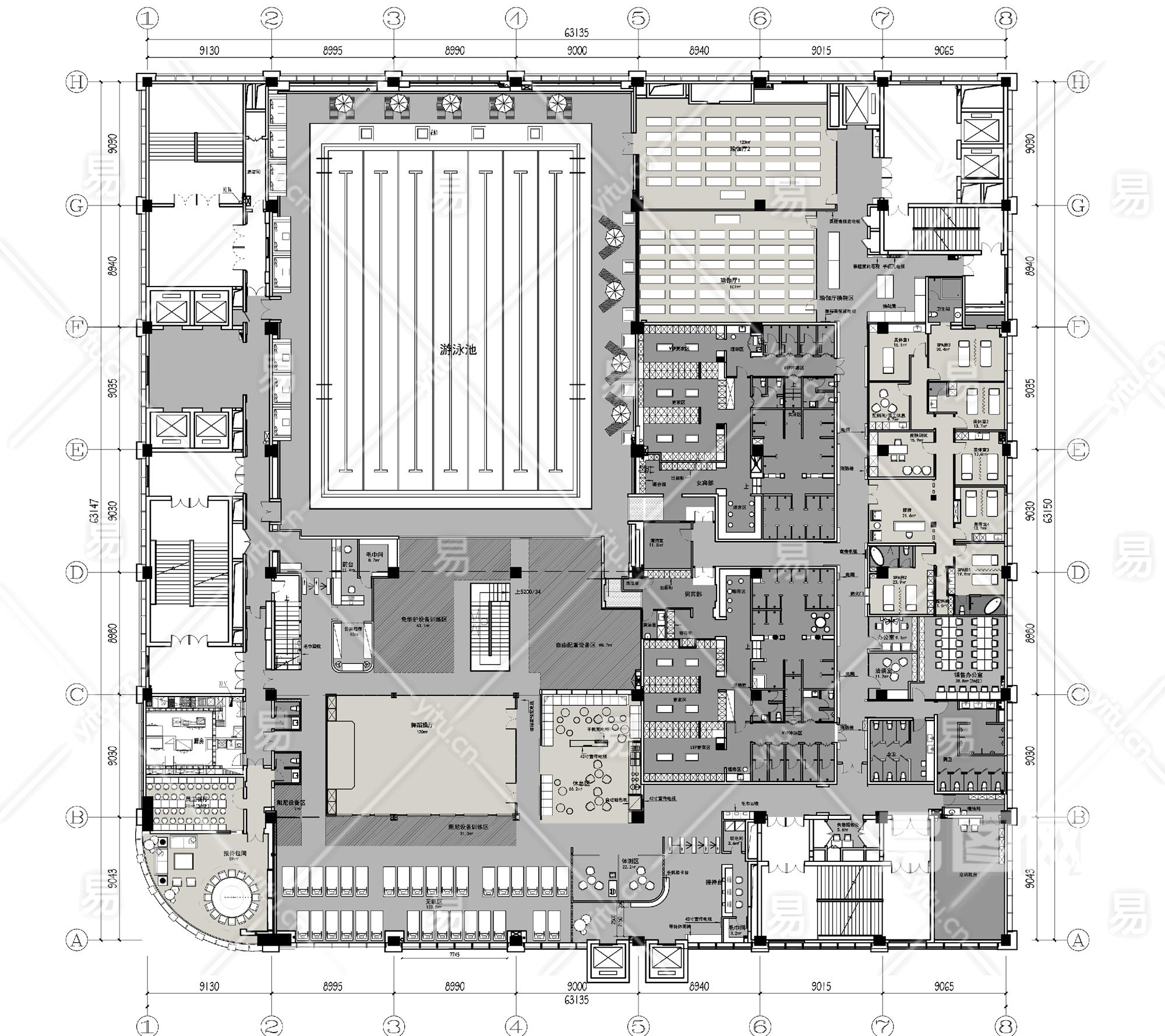 当前的位置:首页 > 室内CAD图纸 > cad > 餐饮娱乐 > 休闲娱乐 > 【CAD图纸】尊爵汇健身中心俱乐部 效果图+CAD施工图