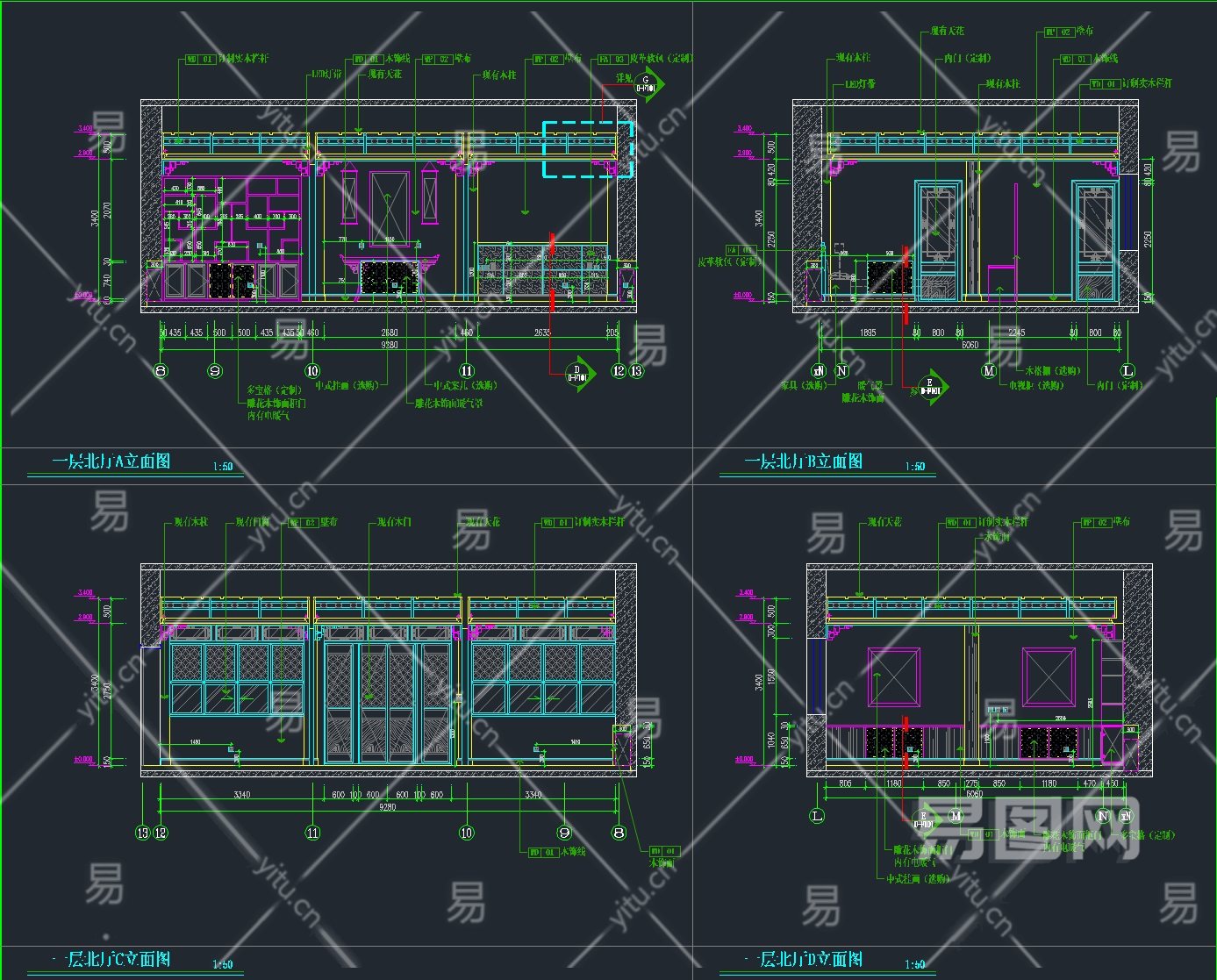 当前的位置:首页 > 室内CAD图纸 > cad > 家装图纸 > 样板房 > 【CAD图纸】北京千竿中式古典丨效果图+CAD施工图