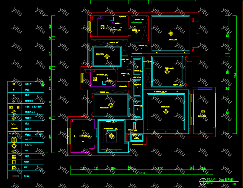 美式风格别墅设计施工图,别墅家装CAD施工图纸下载,内容包含:平面图(平面布置图,顶面布置图,坪布置图,平面尺寸图,平面材质图,顶面尺寸图,顶面材质图),立面图,详图,节点图。