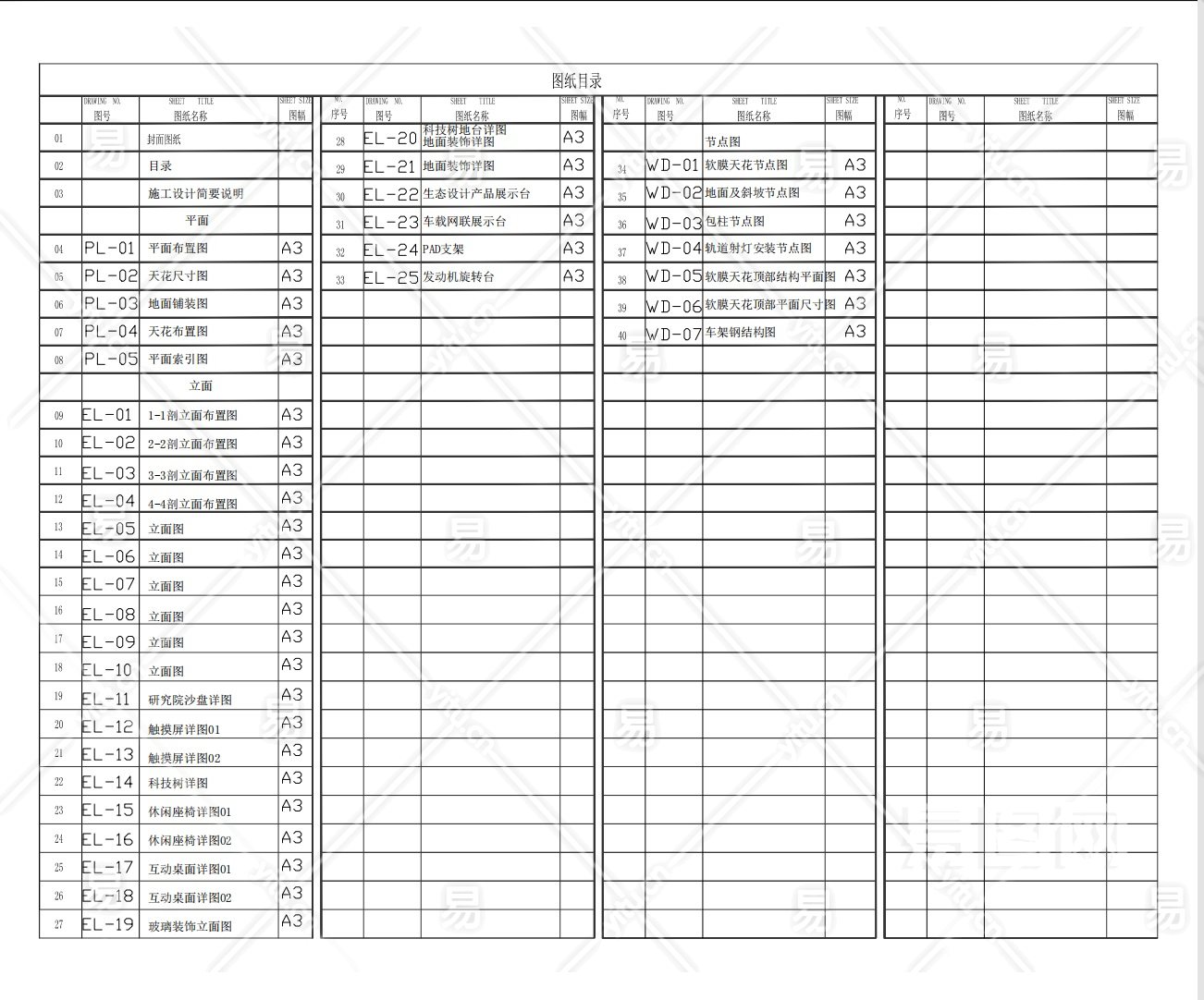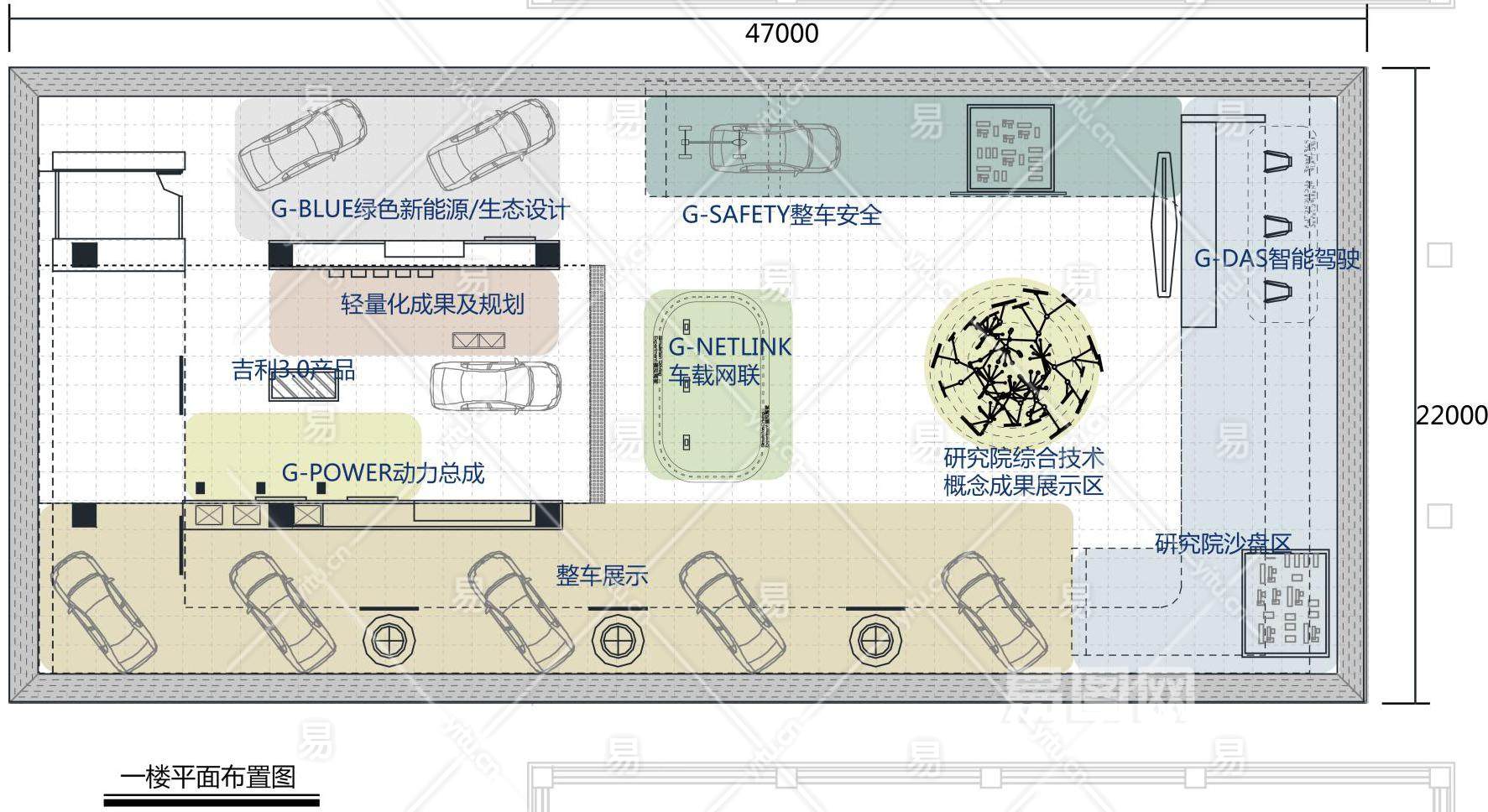 当前的位置:首页 > 室内CAD图纸 > cad > 公共区间 > 展厅展馆 > 【CAD图纸】吉利汽车新研发设计和试验中心展厅丨效果+彩平图+施工图+物料+机电图+钢结构图纸