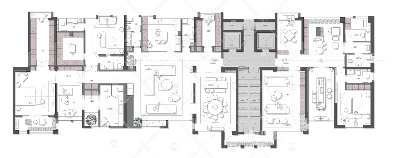 当前的位置:首页 > 室内CAD图纸 > cad > 建筑方案设计 > 居住建筑图纸 > 【CAD图纸】520㎡大平层CAD平面方案+PSD彩平