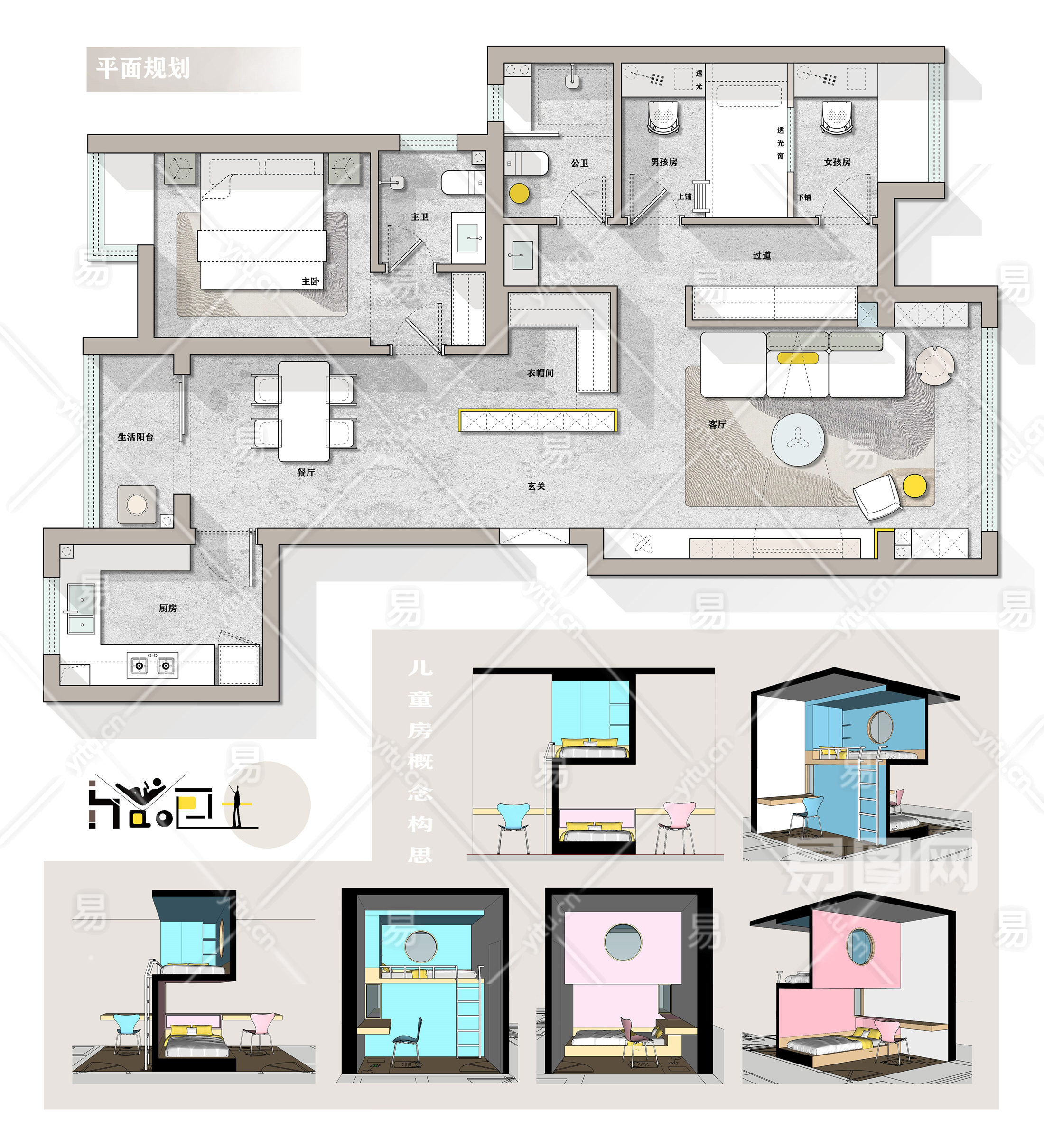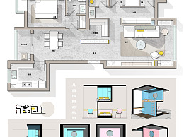 【CAD图纸】97㎡两居室CAD平面方案+PSD彩平