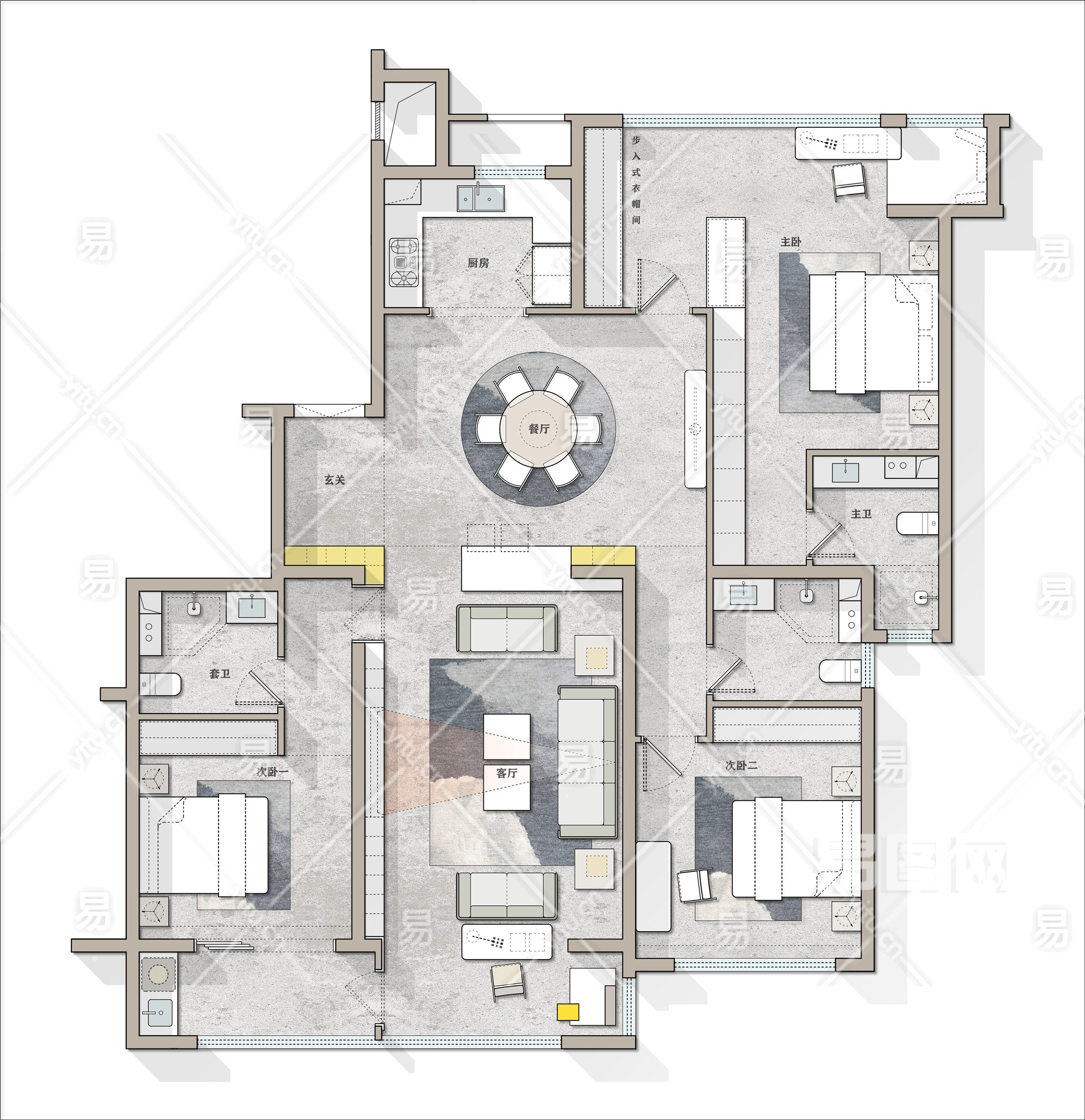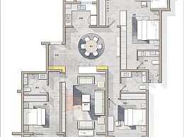 【CAD图纸】152㎡三居室CAD平面方案+PSD彩平