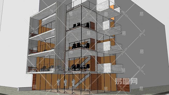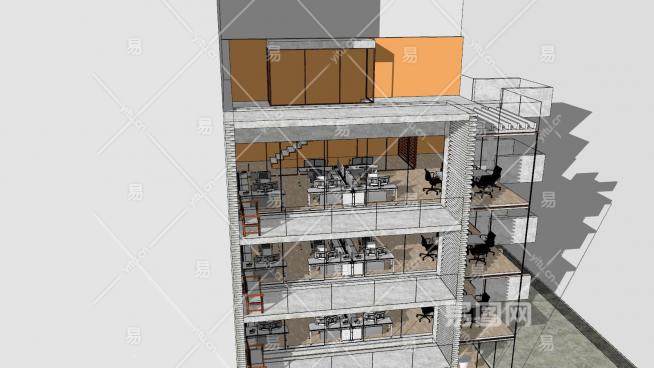 四层办公楼建筑SU模型下载_sketchup草图大师SKP模型